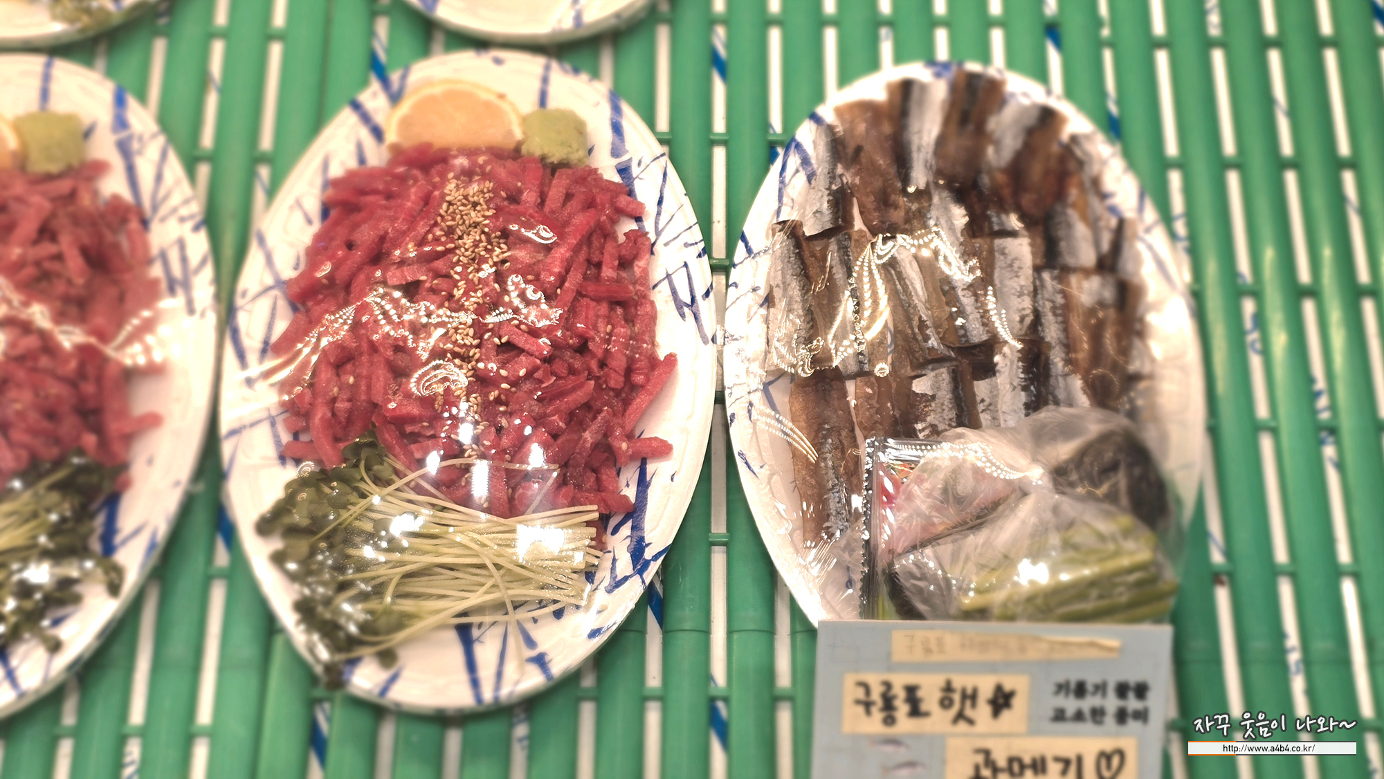 참소라 훅회와 문어숙회, 갑오징어숙회, 도다리세꼬시와 소고기육회, 구룡포 과메기도 방이동 맛집 오지다에서 만나볼 수 있네요.