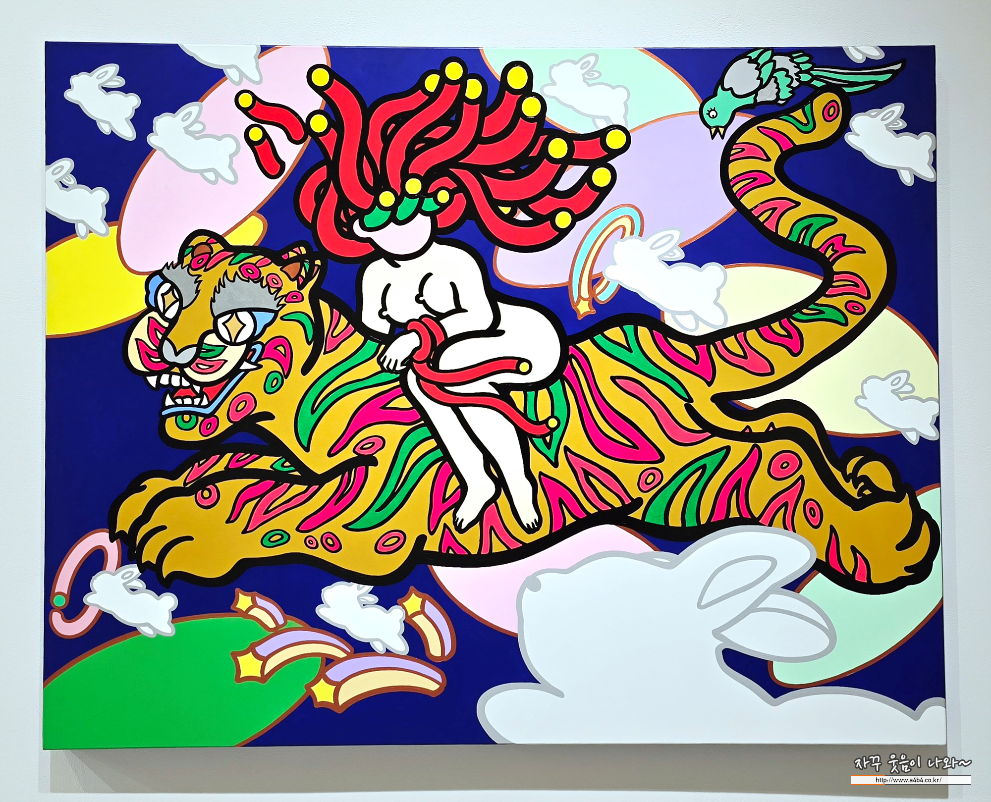선명한 색채와 또렷한 윤곽선을 바탕으로 현대인의 일상과 감정을 캐릭터화해 풀어내는 페인팅 작가다. 케첩과 마요네즈 튜브에서 출발한 ‘마토’와 ‘마요’를 중심으로, 개인의 욕망을 넘어 현대사회가 만들어낸 욕망과 호기심, 내면의 흔들림을 은유적으로 펼쳐 보인다. 일상 공간을 배경으로 한 장면 속 비어 있는 얼굴은 관람자의 감정을 받아들이는 자리가 되고, 관객은 자신의 기억과 감정을 대입하며 각자의 이야기로 작품을 완성한다. 회화에 머물지 않고 다양한 매체와 협업 프로젝트로 작업을 확장해 온 점 역시 그의 작업을 특징짓는다.