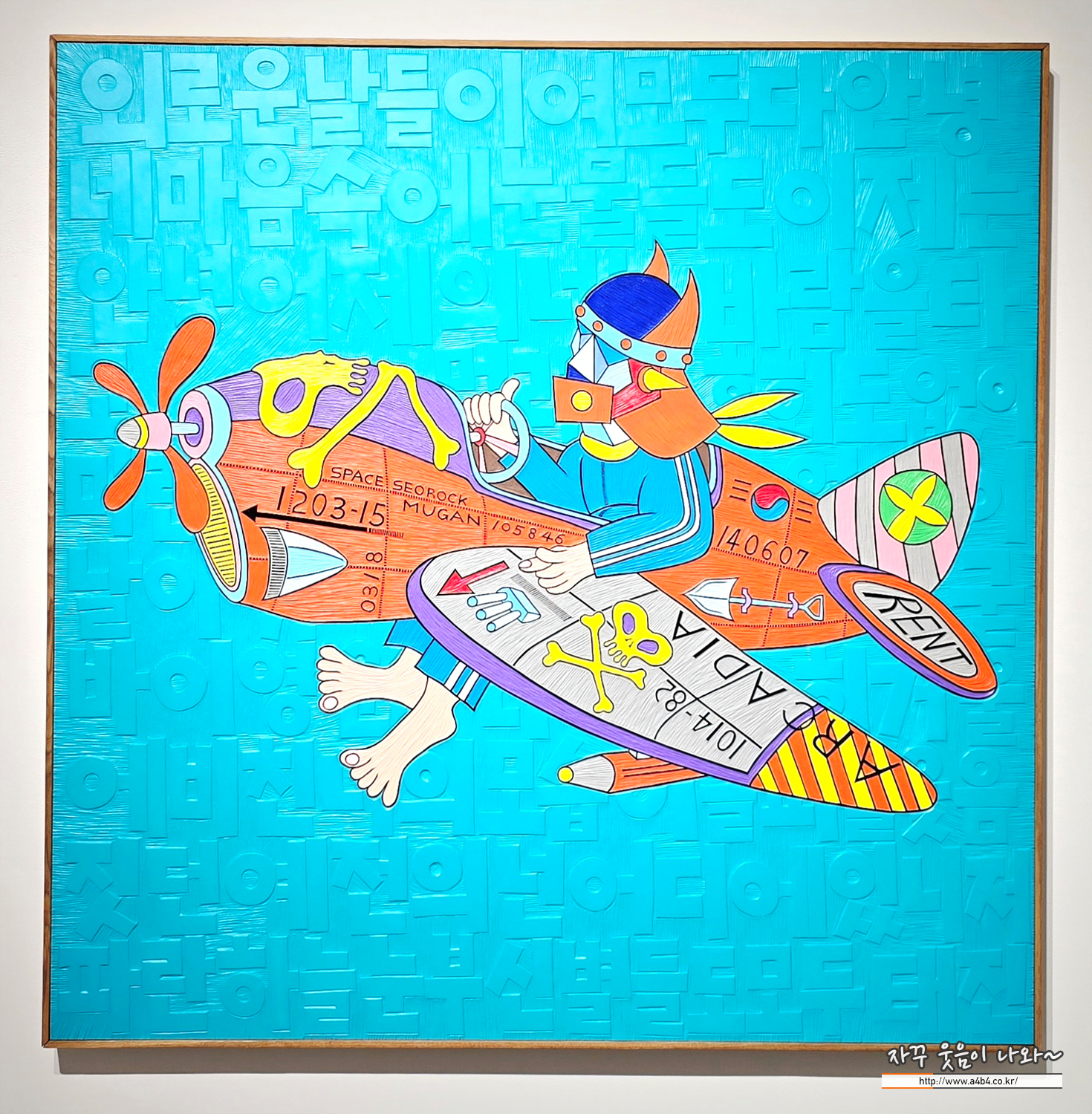 마징가와 태권V의 대비는 개인의 성장사를 넘어 역사와 세대의 기억을 환기한다. 그는 시조와 만화 주제가, 유행가를 함께 새기며 개인의 염원과 시대의 리듬을 판 위에 겹쳐 놓는다. 신화적 영웅에서 실존적 인간으로 내려온 태권V의 변화는, 작가가 ‘주어진 본질’에서 ‘스스로 만들어가는 본질’로 이동해 온 과정과 겹쳐진다. 그의 작업은 묻는다. 너는 너 자신의 의미를 어떻게 새기고 있는가.