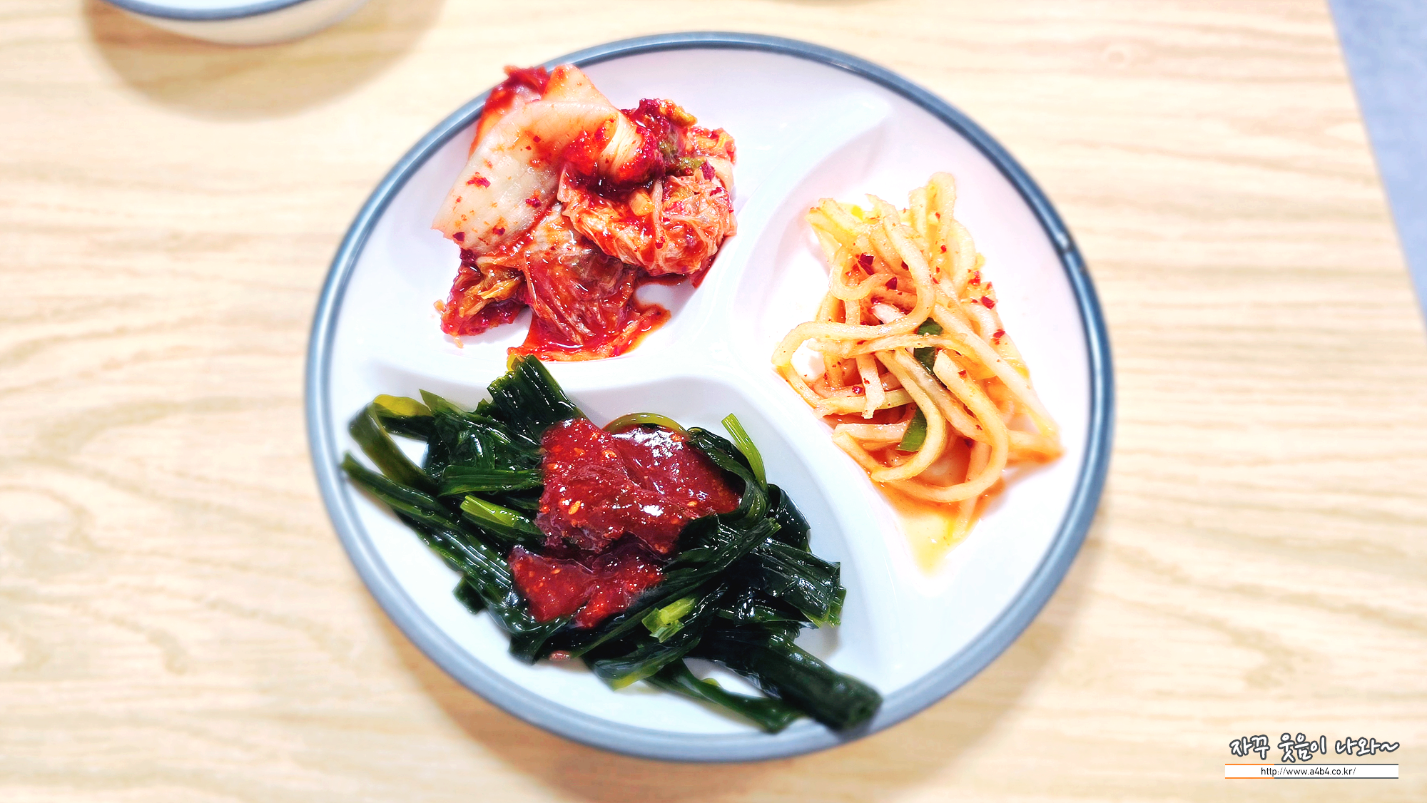 가락동 맛집 맘스돈까스 반찬은 김치와 무채나물 그리고 미역줄기, 단무지가 나오고요. 셀프코너에서 필요하신 만큼 리필 가능합니다. 미역줄기 맛있다는...