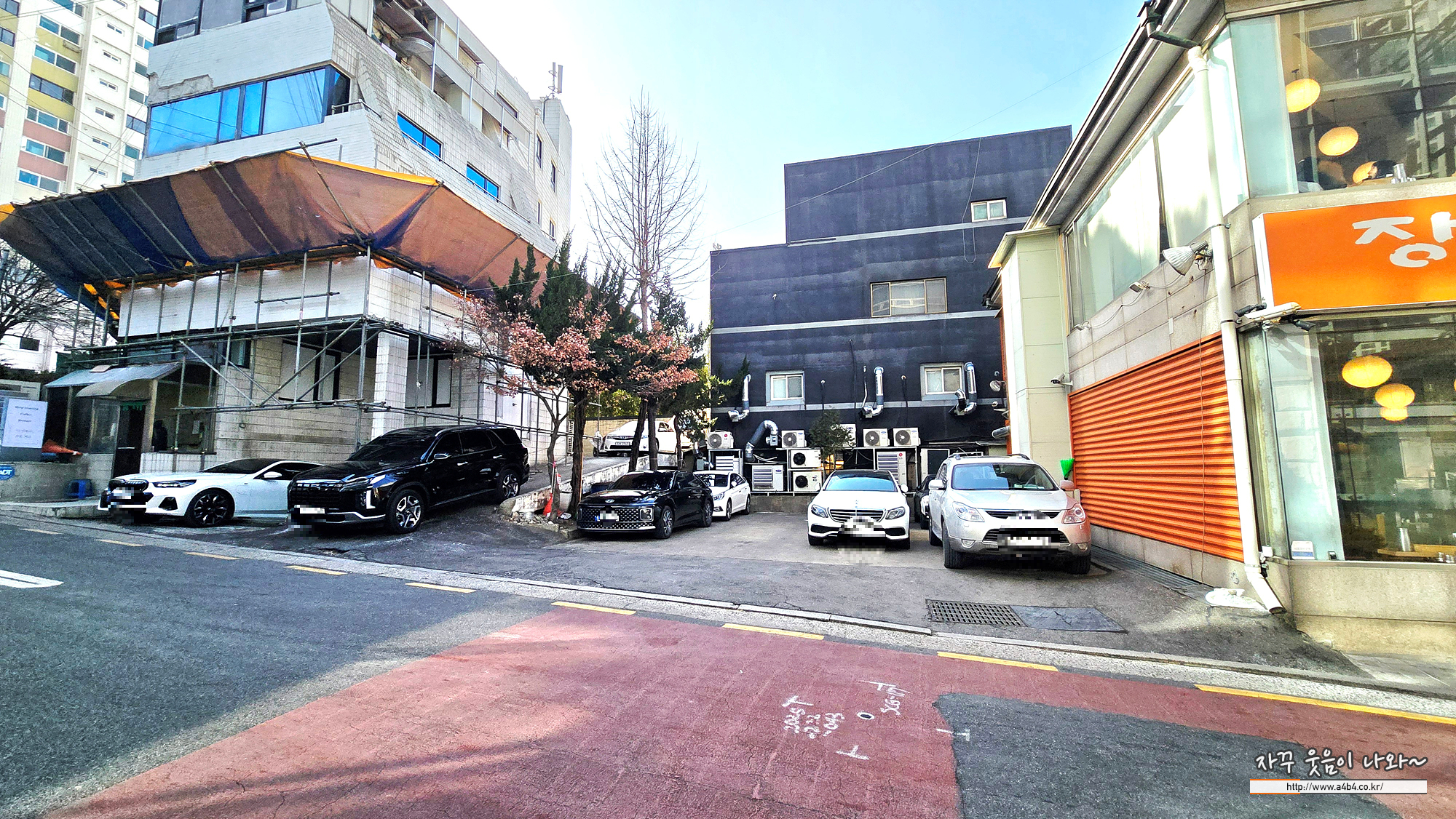 장꼬방 묵은지 김치찌개 주차장은 건물 앞과 옆부분에 있습니다. 워낙 차로 방문하는 손님이 많다보니 항상 주차장이 부족한데요. 이곳은 무료 발렛주차 가능합니다. 건물 옆으로 오시면 주차 안내하시는 분들께서 친전하게 차량 정리해 주십니다.