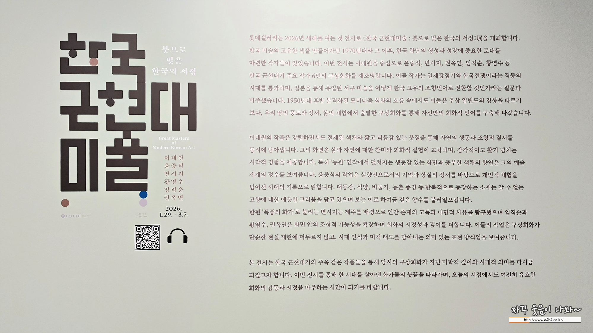 오늘 소개드린 한국 근현대미술 : 붓으로 빚은 한국의 서정 @ 잠실 에비뉴엘아트홀 전시회는 3월 7일까지 무료로 관람 가능합니다.