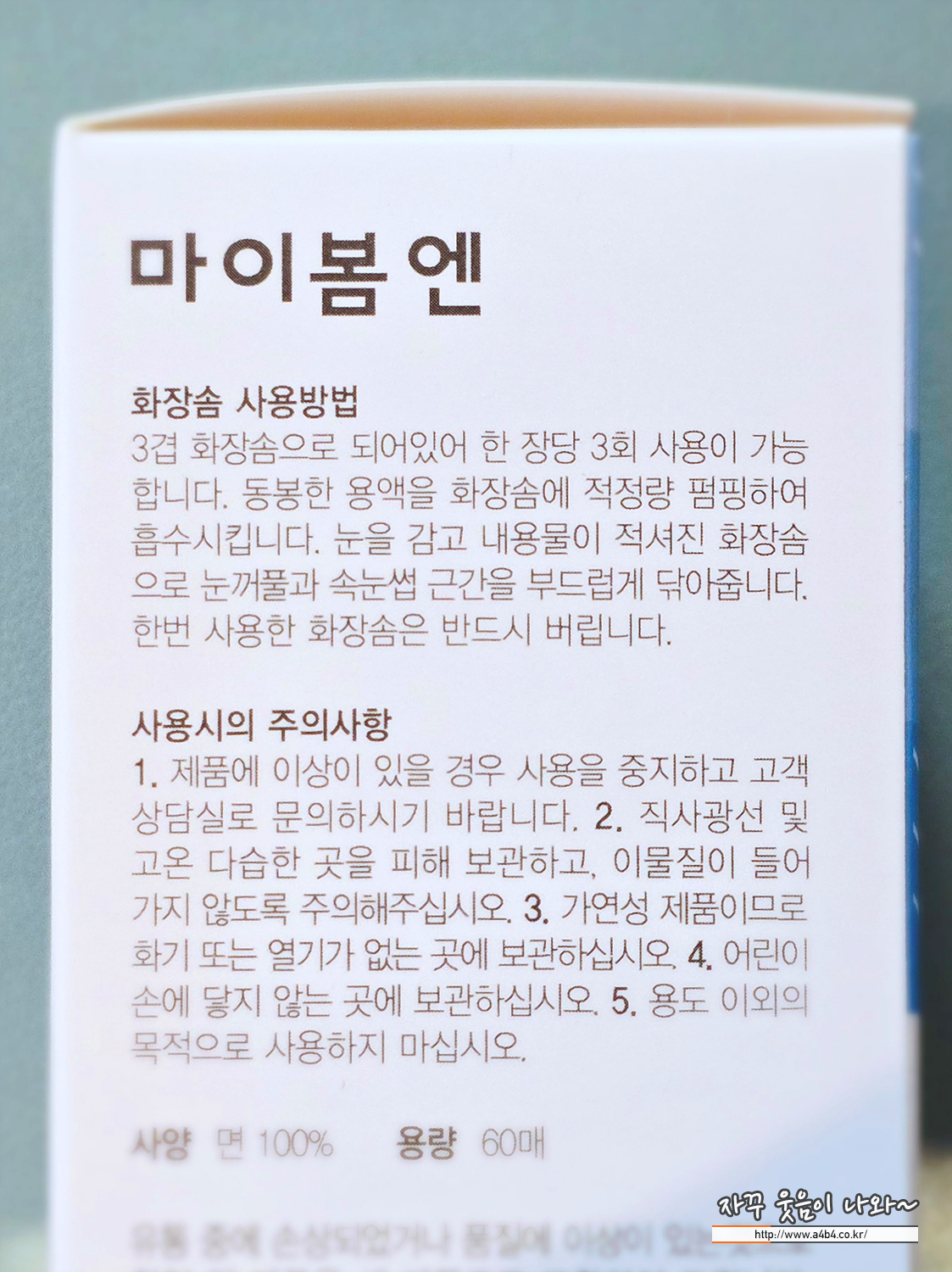 화장솜 60장이 동봉되어 있습니다.