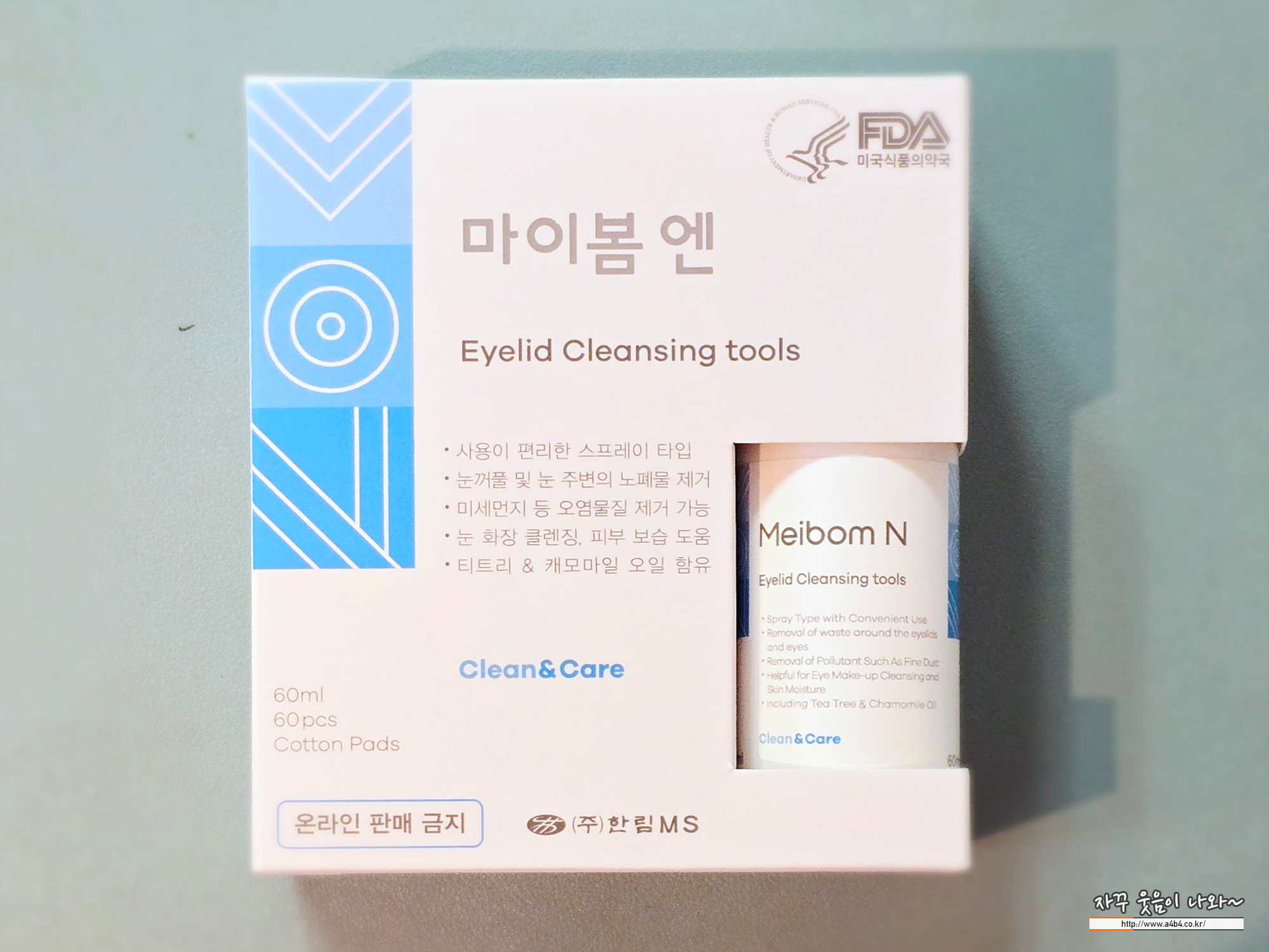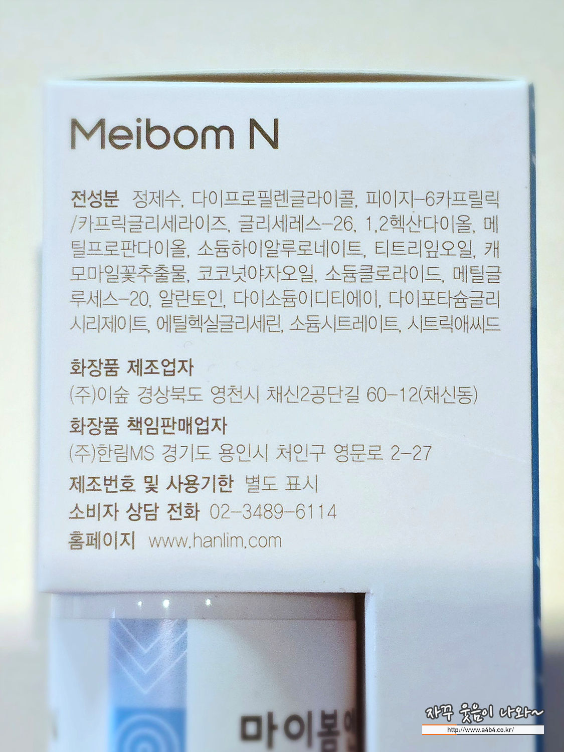일부에서는 Meibom N이 의약품으로 오해되기도 하지만, 의약품이 아닌 화장품입니다. 그래서 페키지에 화장품이라고 명시되어 있네요. 제조는 (주)이숲, 판매는 (주)한림MS 입니다.