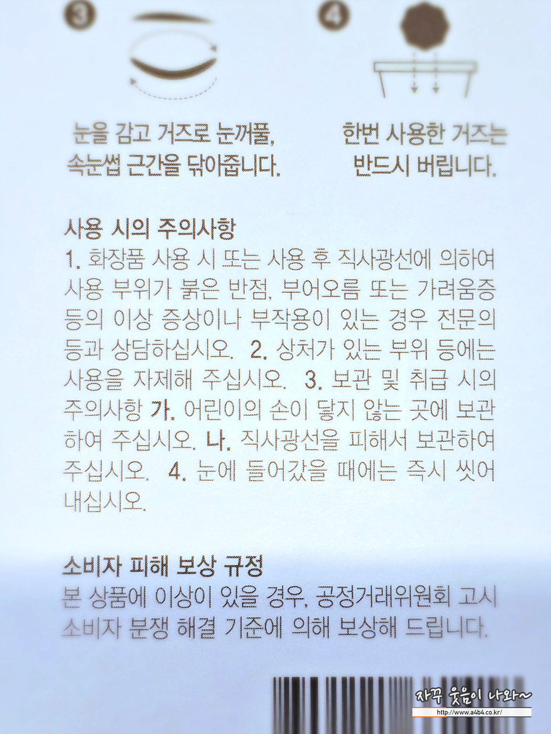 사용시 너무 눈에 압박을 가하면 안됩니다. 가볍게