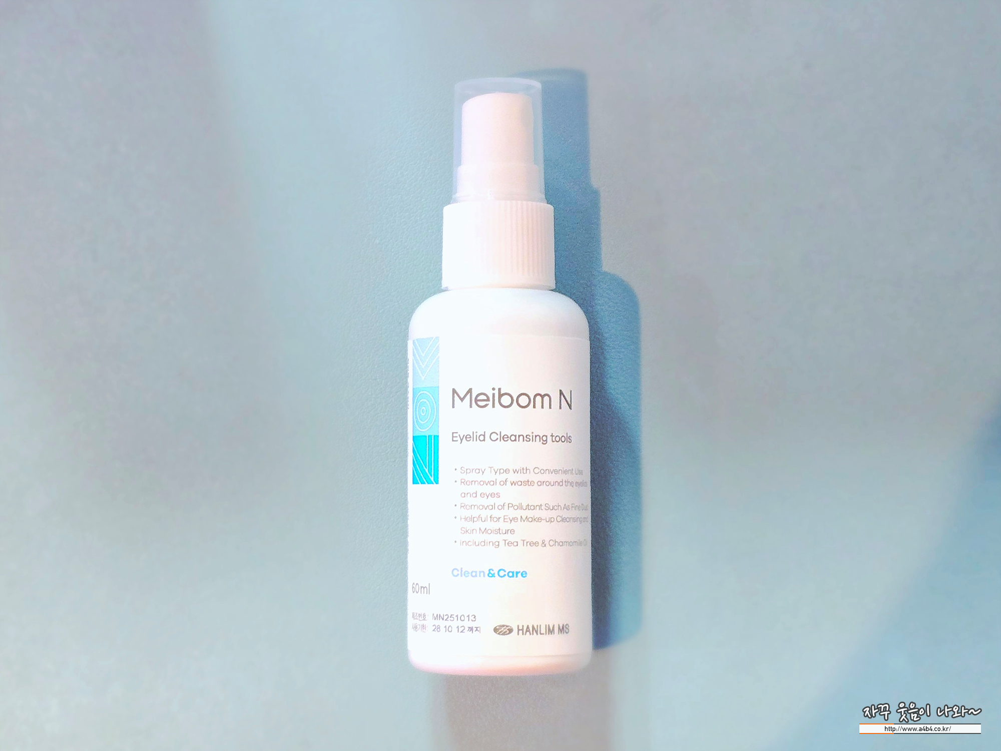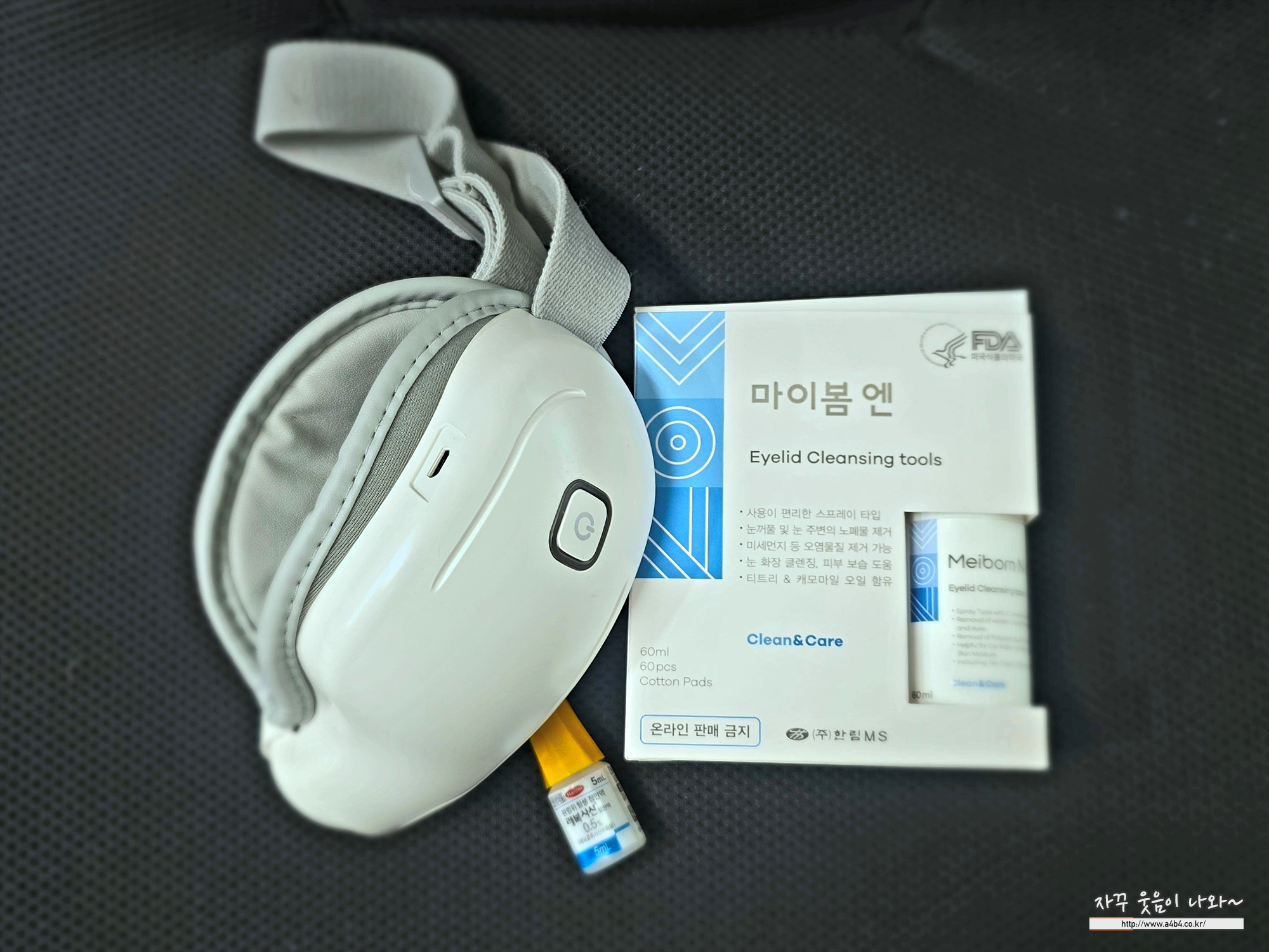 매끄러운 부분에 마이봄엔 스프레이 뿌리고 눈가를 닦는 방식으로 사용합니다.
