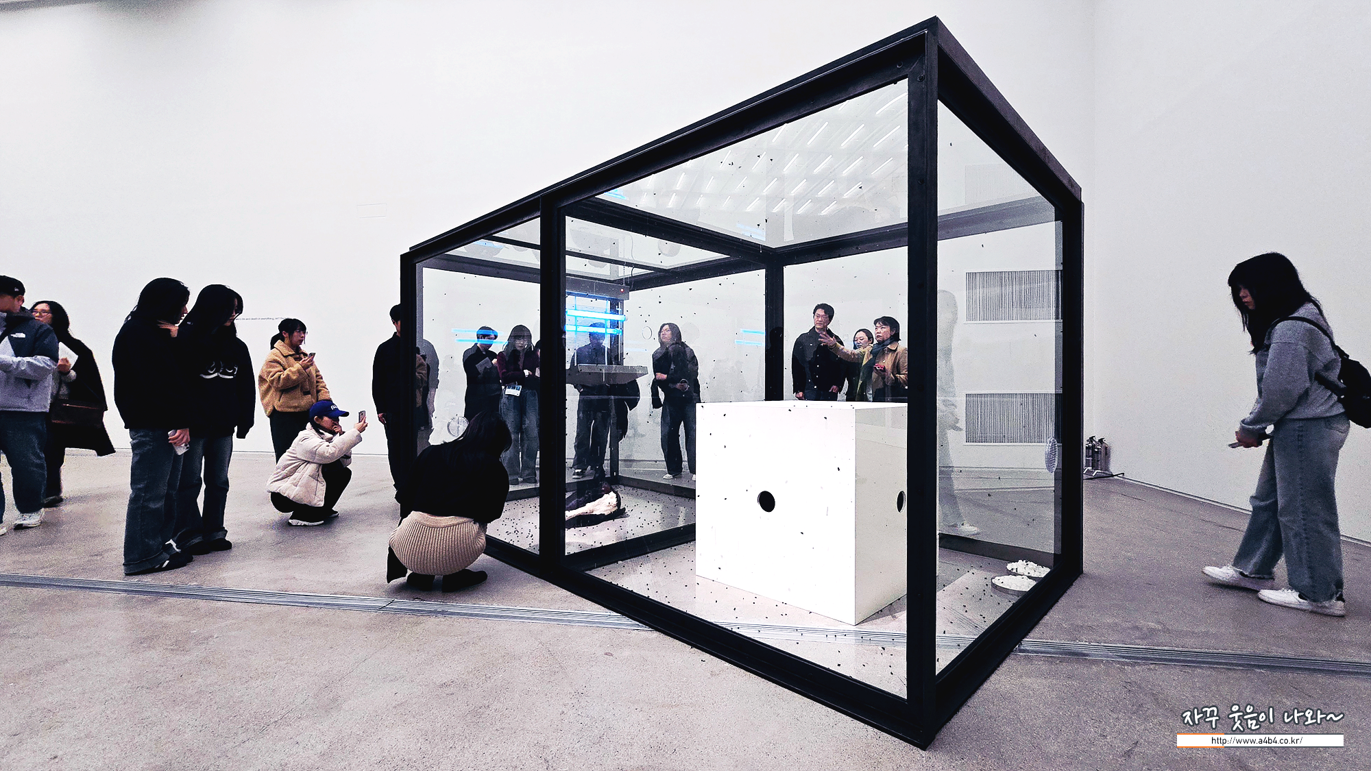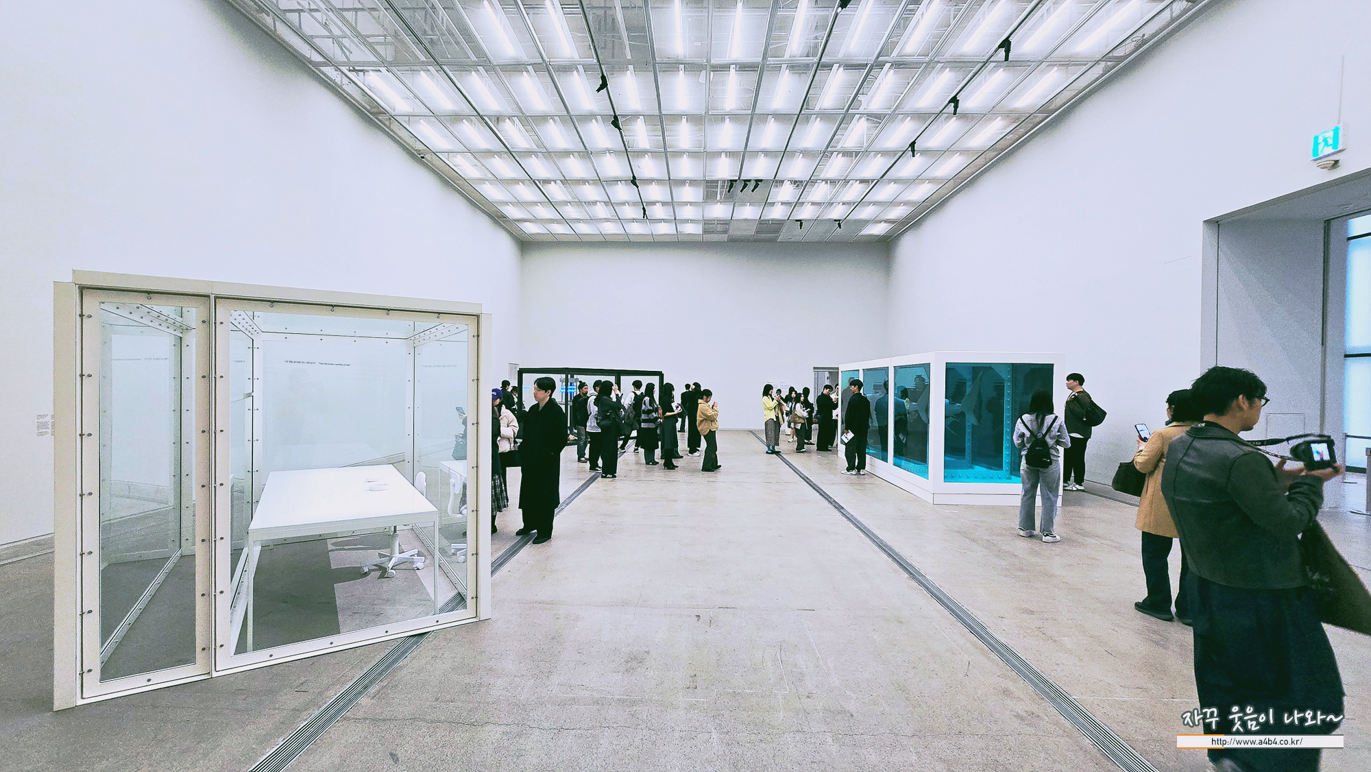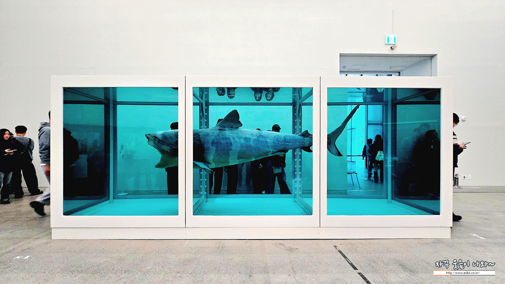국립현대미술관 데이미언 허스트 전시회 '1부 모든 질문에는 의심이 따른다' 이어 아래 통로를 지나가면 제2부 우리는 시간속에 산다 공간으로 이동합니다. 바로 이번 전시회 논란이 있는 상어와 소머리 작품이 있는 공간...