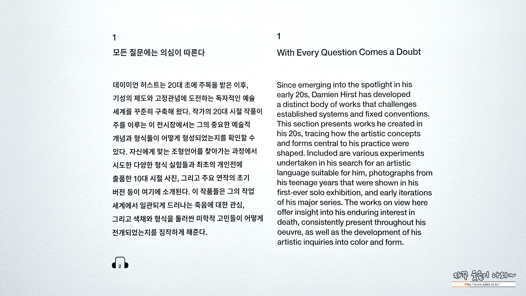 여기까지가 데이미언 허스트 전시회 4부 중 전반부인 1부와 2부 공간, 또하나 유명한 데미안허스트 해골은 다음 공간이 3부에서 만나볼 수 있는...