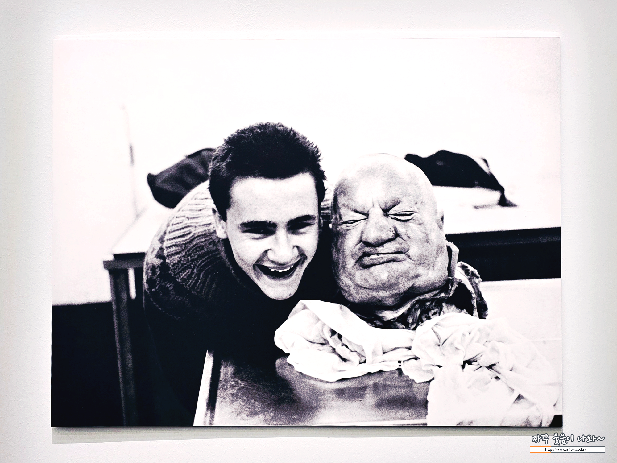 허스트가 16세 때 리즈의 시체 안치소에서 몰래 찍은 사진이다. 잘린 시체 옆에서 악동처럼 웃고 있지만 속으로는 공포에 질려 있었다고 한다. 그는 1991년 첫 개인전에서 10년 전의 이 사진을 확대해 작품으로 제작하며, 자신의 예술이 죽음에 대한 집착과 공포에서 기원했음을 암시했다.