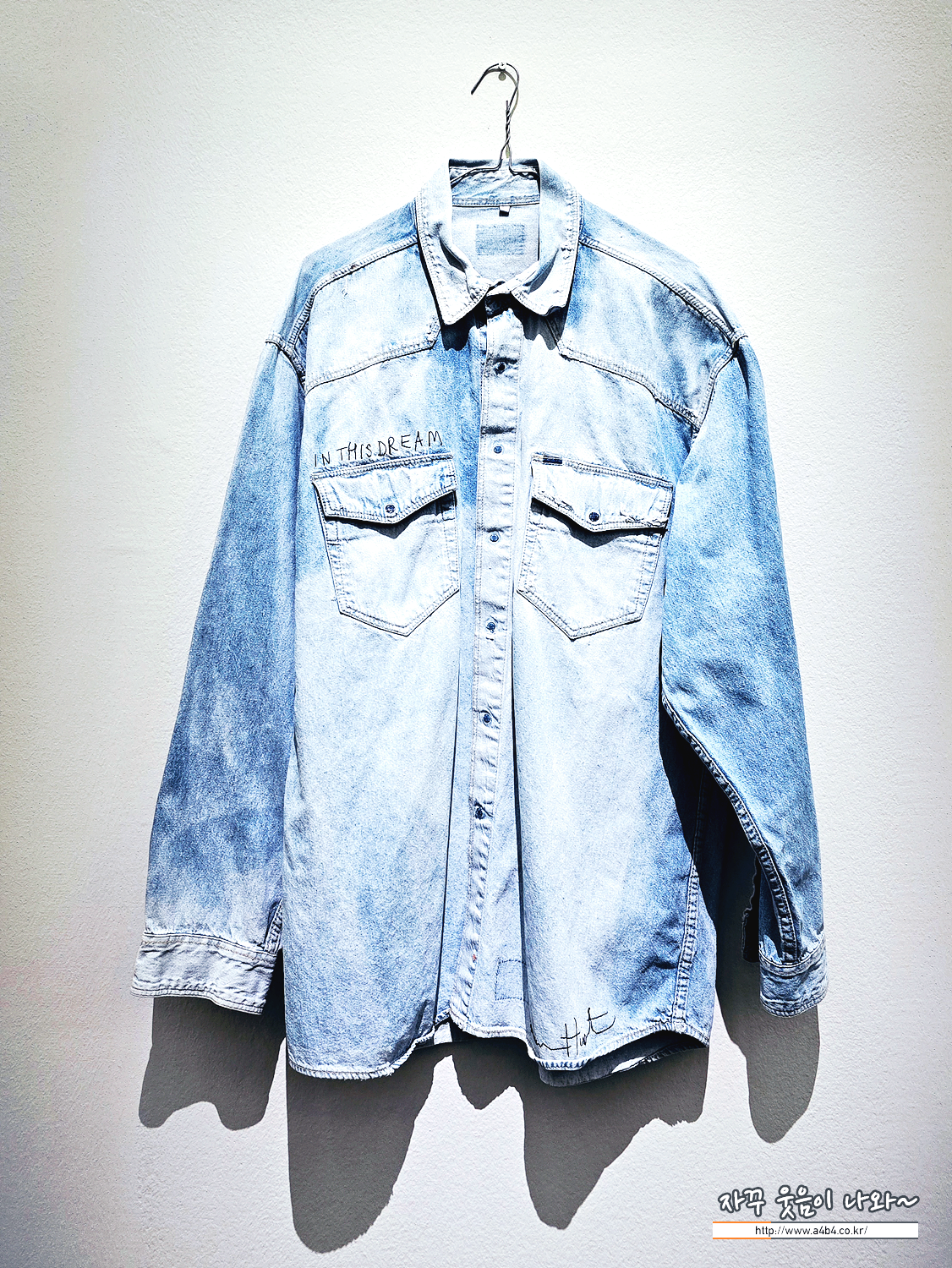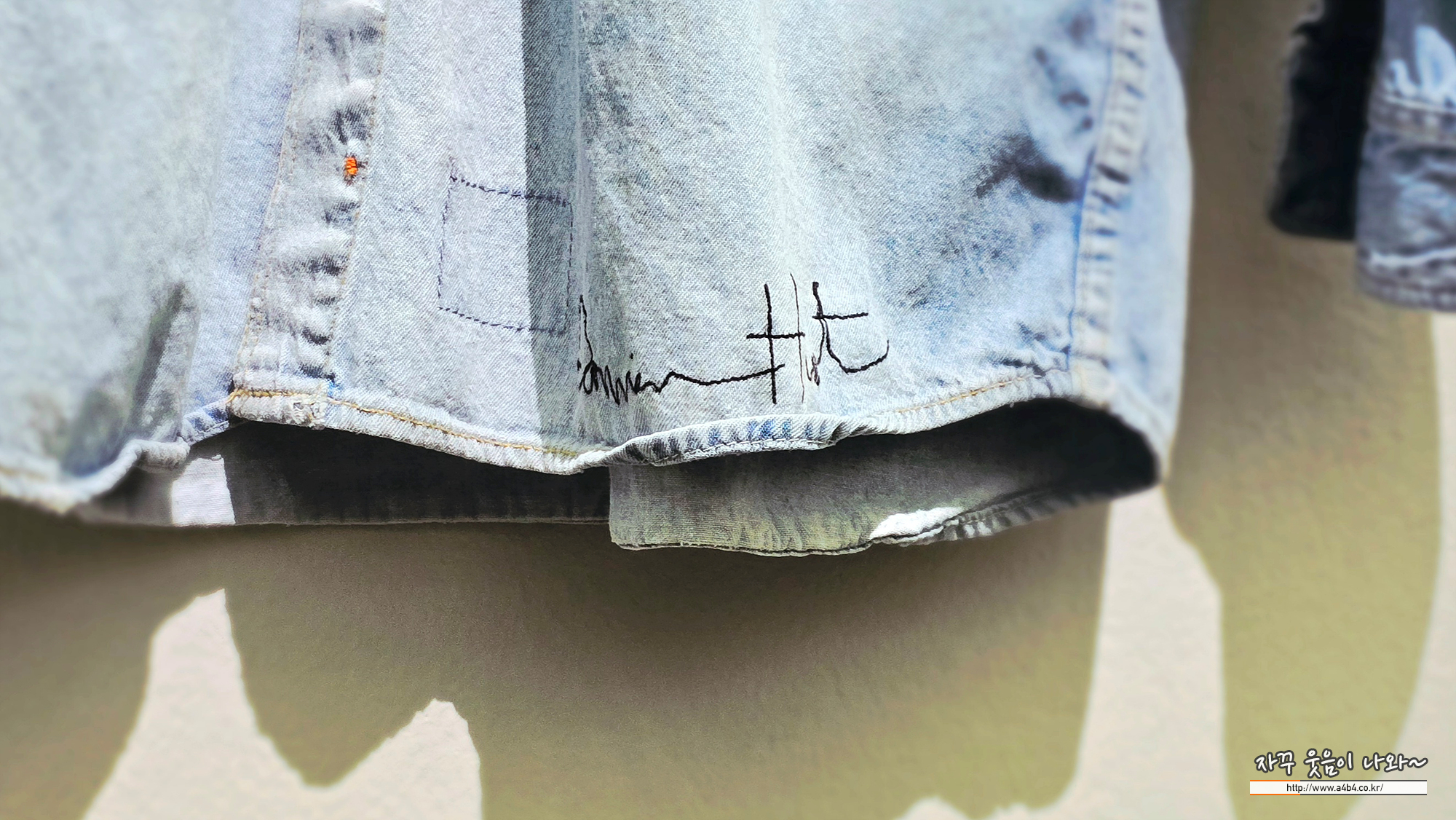 데님 셔츠, 자수, 옷걸이, 나사, 벽면 플러그 등을 활용한 95 × 65 cm 크기의 개인 소장 작품이다
