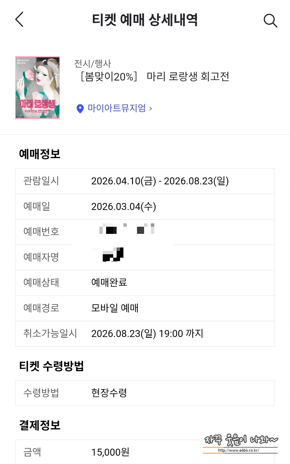 (1) 마리 로랑생 회고전 얼리버드 티켓팅은 40% 할인 가능합니다.
