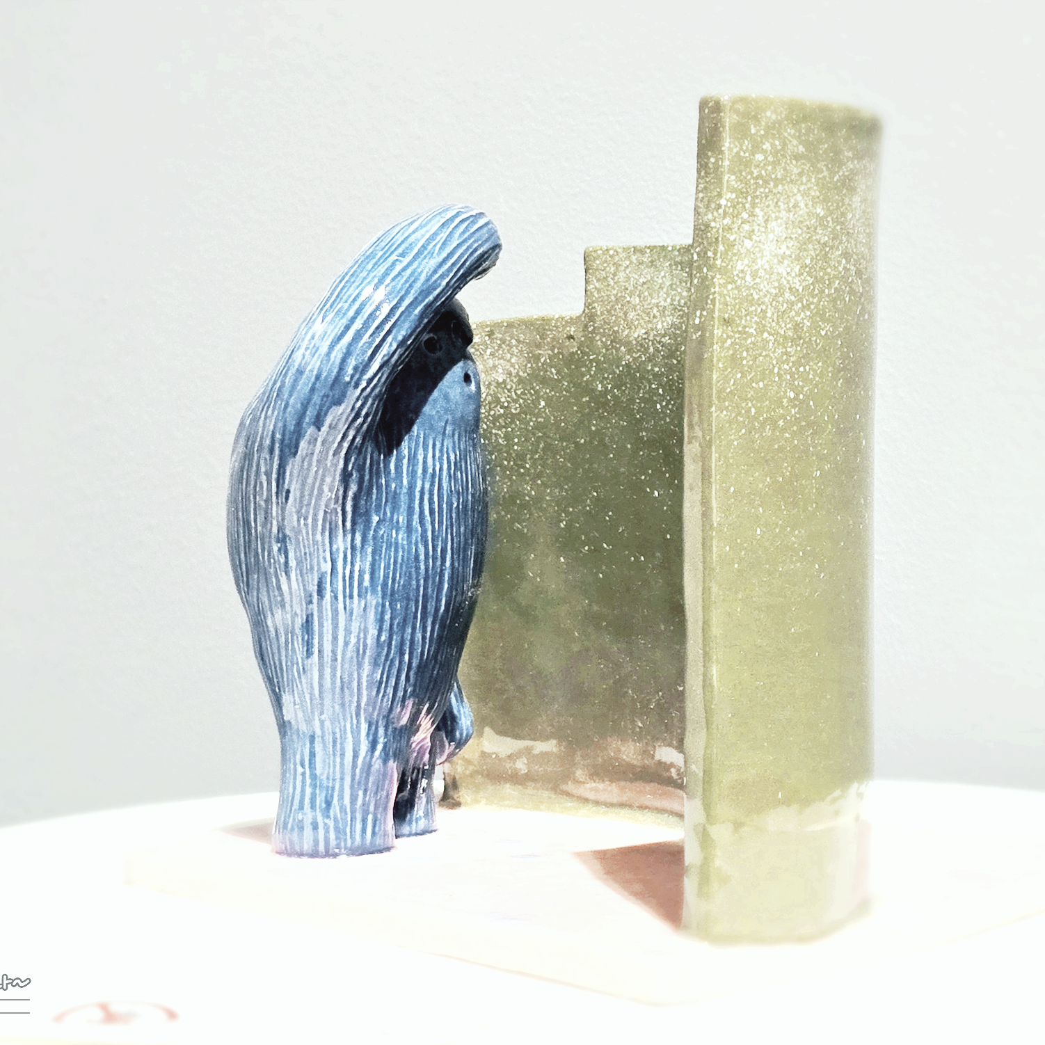 19 x 17 x 18 cm. Paperclay, Underglaze, Clear glaze