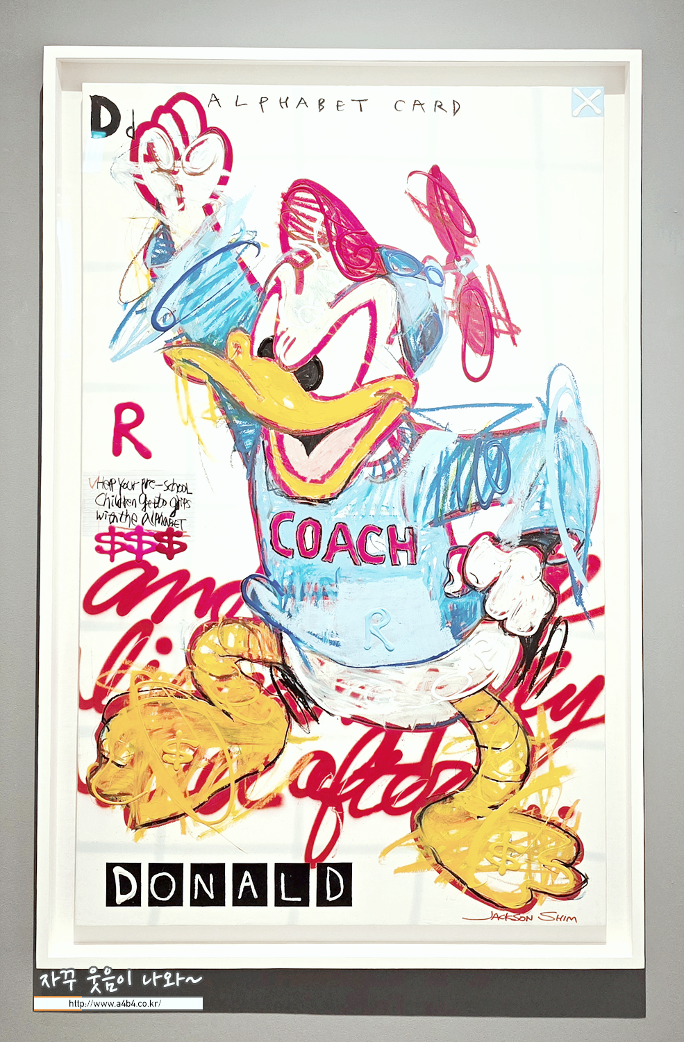 아이의 색칠공부에서 영감을 받은 '알파벳 카드' 연작은 순수한 시선으로 대중문화무를 해석하는 작가의 방식을 잘 보여주며, 익숙한 이미지들은 그의 손을 거쳐 새로운 서사로 재탄생합니다. 관람객은 잭슨 심의 작업 앞에서 자신이 동경해온 것을 떳떳하게 바라볼 용기를 얻으며, 개인의 솔직한 욕망이 곧 이 시대의 진솔한 자화상임을 발견하게 됩니다.