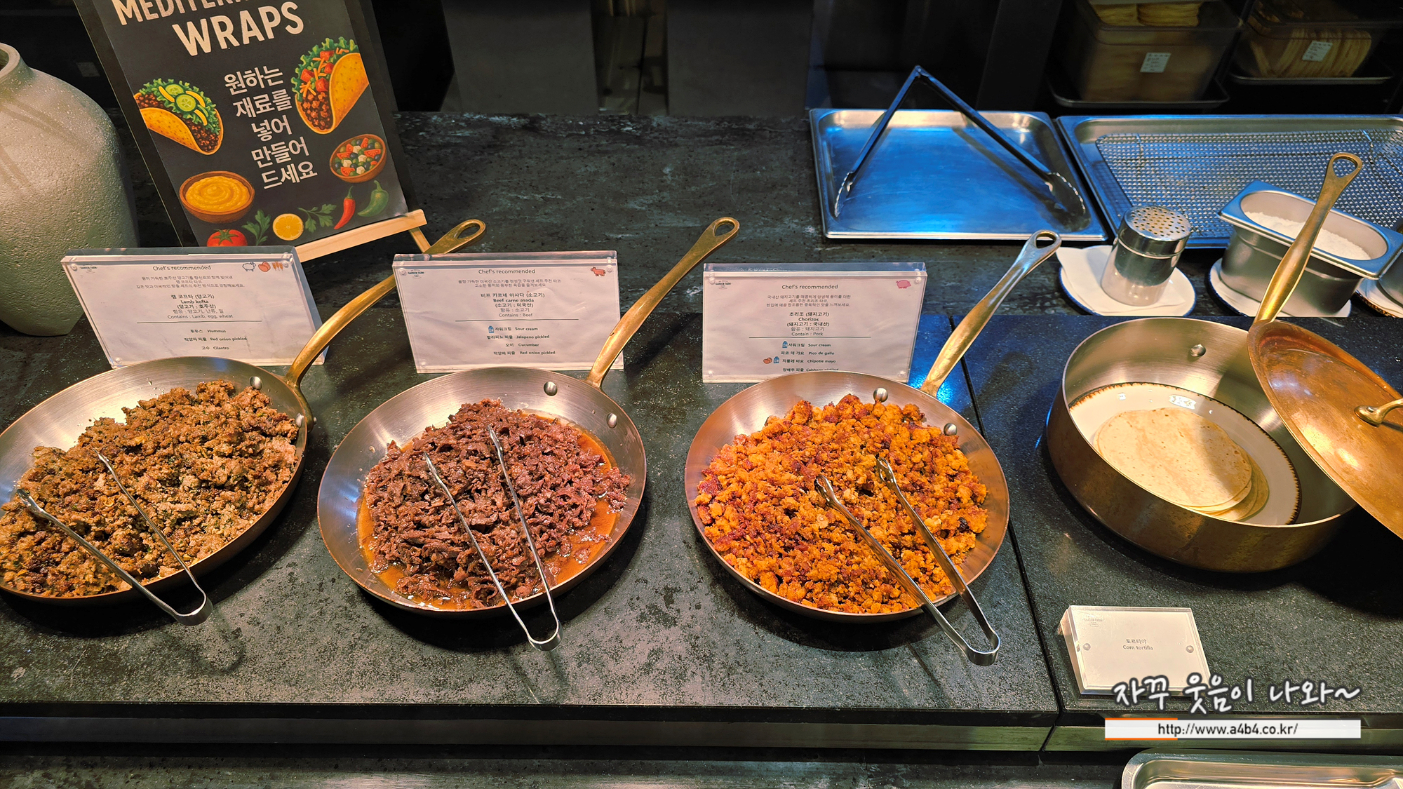 램코프타, 비프카르네 아사다, 돼지고기 초리조가 준비되어 있는데요. 꼭 또띠아가 아니어도 그냥 먹어도 맛있다는...