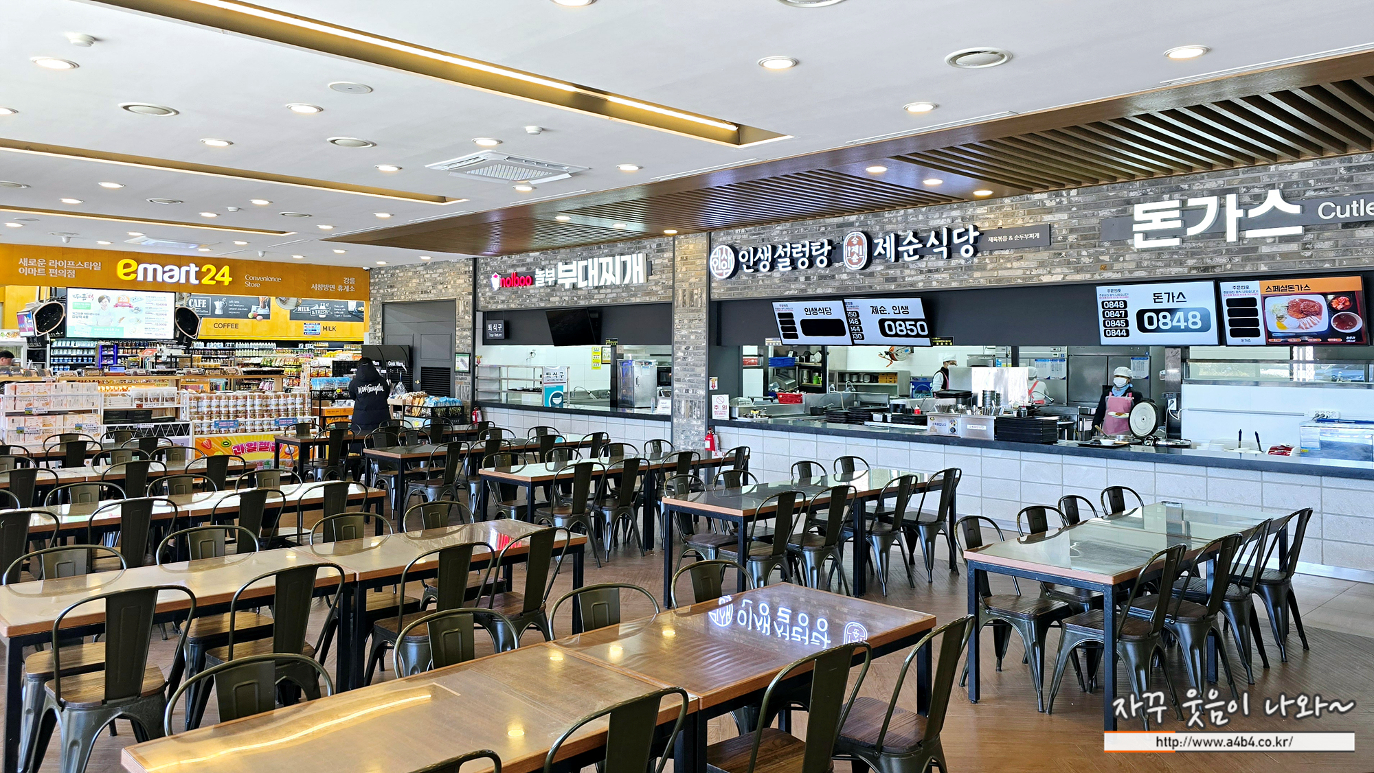 가평휴게소 춘천방향 맛집 소개입니다. 다양한 식당 푸드코트와 군것질, 호두과자, 가평 샌드, 잣라떼 등의 커피와 음료 메뉴 등을 만나볼 수 있지만 늦은 저녁이나 이른아침에 오픈하는 매장은 상당히 제한되어 있습니다.