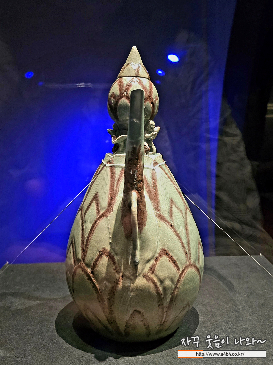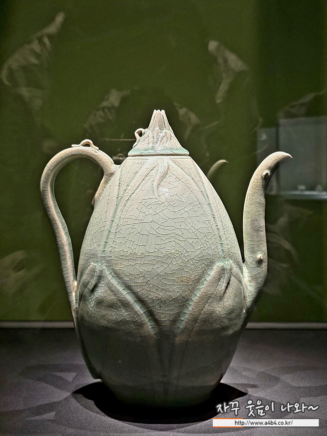 전시장 입구에는 한 점의 고려청자가 전시되어 있습니다.