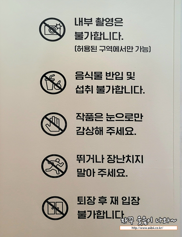이번 전시회는 마지막 포토존을 제외하고는 사진 촬영이 금지되어 있습니다. 이 공간을 지나면 마지막 포토존 전까지는 작품에만 집중하세요. 그리고 도슨트는 없습니다. 다만 아이들을 위한 어린이 도슨트 및 체험 프로그램은 활발하게 진행되고 있습니다.