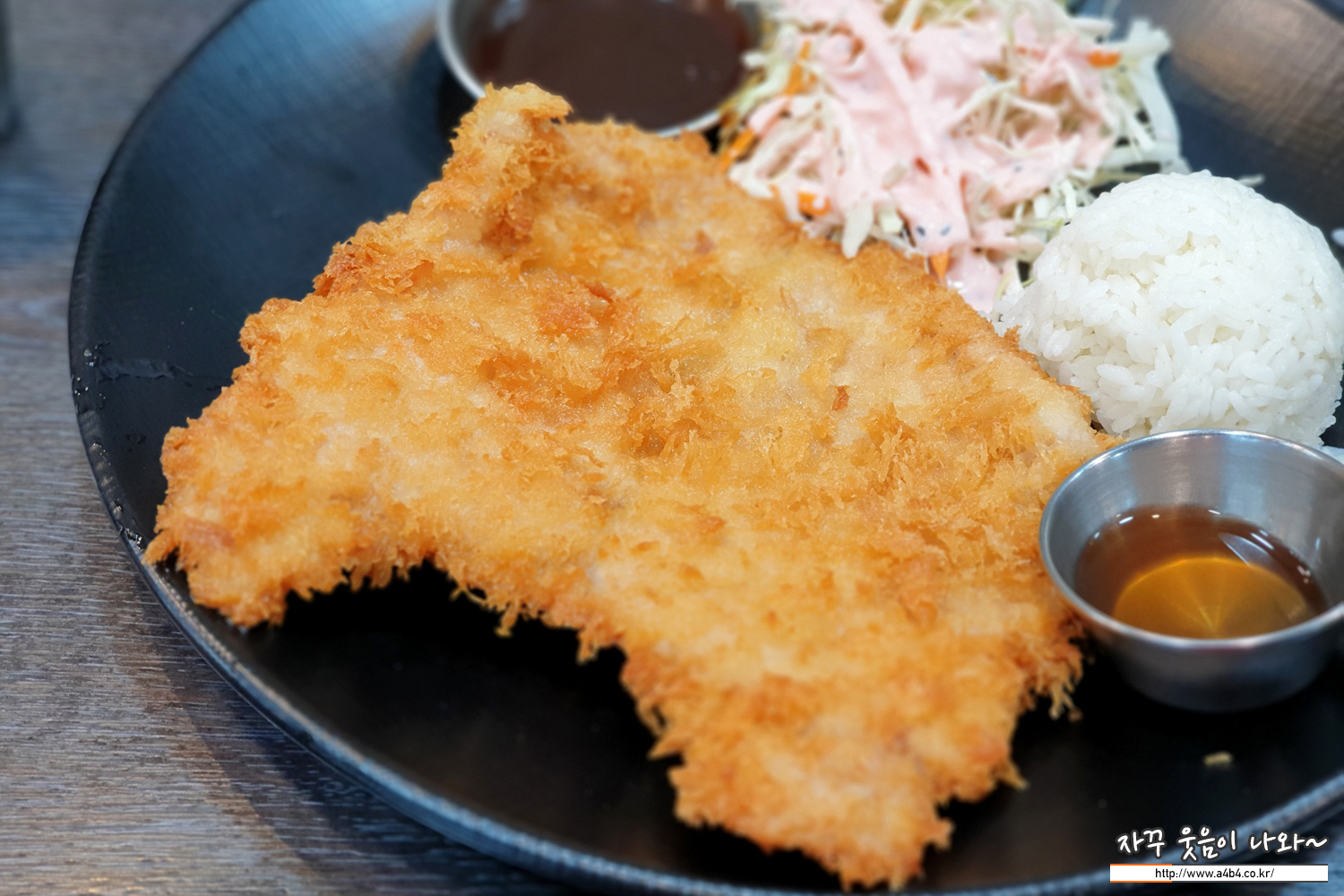 딸아이가 주문한 수제 왕 돈까스입니다. 정말로 큰 왕 돈까스 인데요. 돈까스 킬러인 아이가 반 정도 먹고 남기네요. 길동우동 돈까스 평가는 이 정도로...