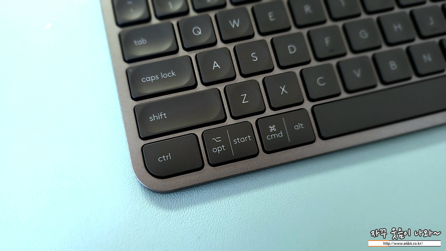 오늘 소개한 제품은 로지텍코리아 정식 제품이 아닌 병행수입제품입니다. 그래서 자판에 한글 및 한/영 실크처리는 없는데요. 키보드 스페이스바 기준 오른쪽의 cmd | alt 버튼으로 한영 전환이 가능합니다. (별도 설정 필요없음(