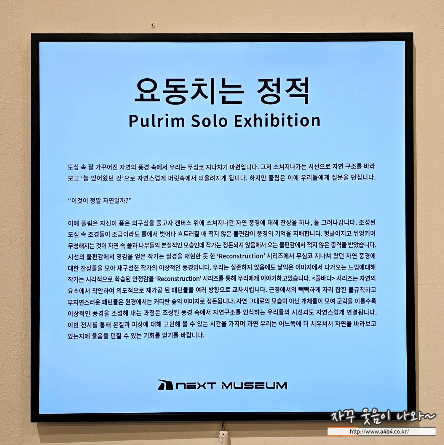 관람시간은 휴일없이 10:30 - 22:00 까지로 시간이나 요일에 구애받지 않고 감상할 수 있는 점도 넥스트갤러리 매력
