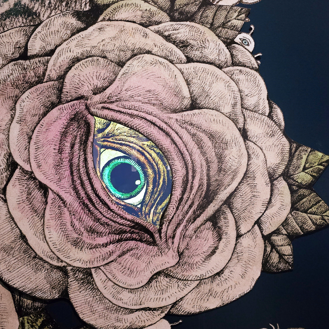작가 자신의 말에서 "피부가 표면에 닿으면 모든 접촉점의 이미지인 마크를 남기게 되고, 결과적으로 이것이 민감점의 이미지입니다. 가시로 표시를 확대해서 캔버스에 그렸습니다. 가시가 피부의 민감성을 암시하기 때문에 가시를 사용했습니다.
