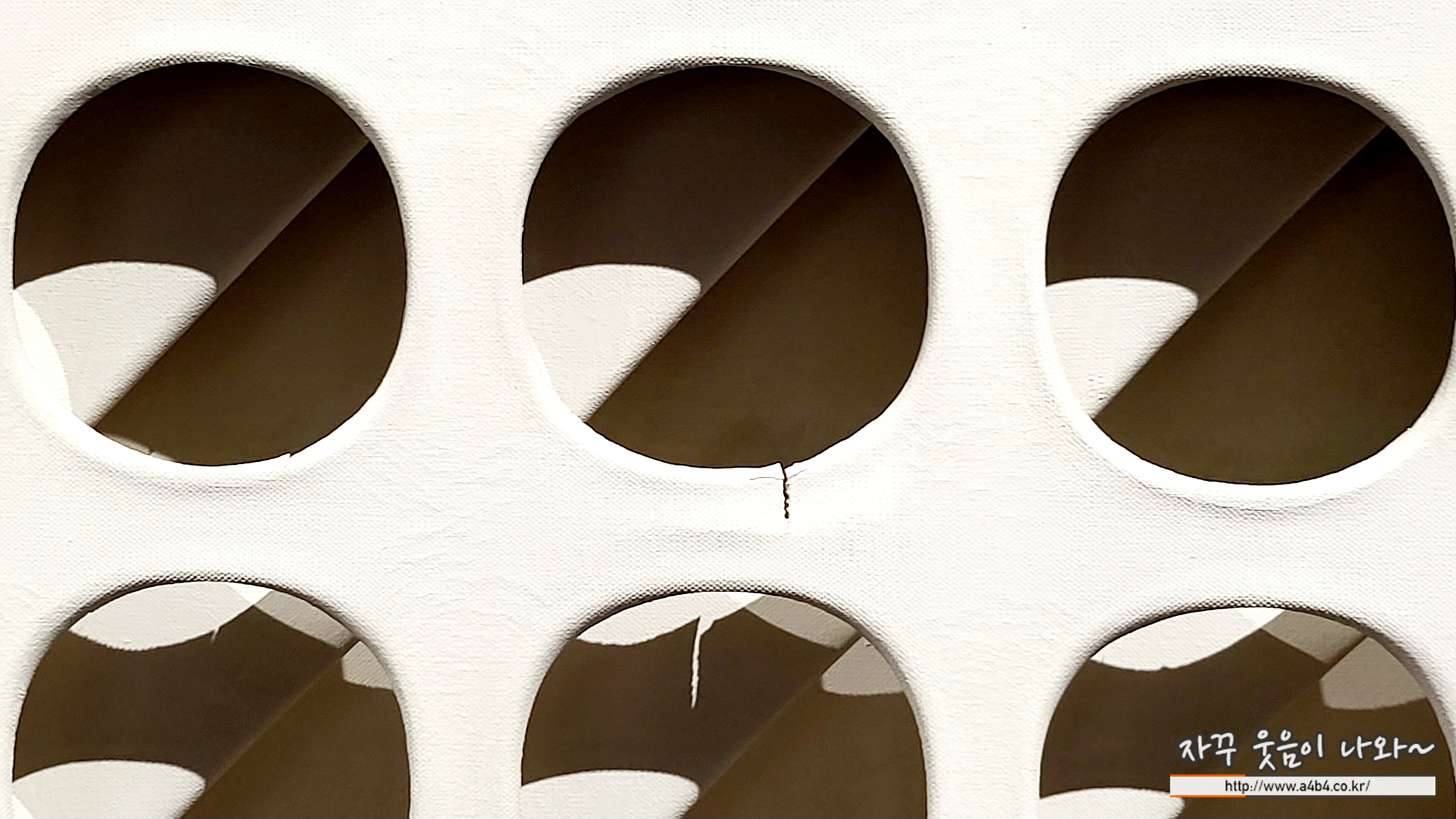 그러나 작품공간을 지나 뒤로 돌아서면 앞부분과 상반된 흰 캔버스에 작업한 자맹의 '내면자화상' 작품을 만나볼 수 있습니다.