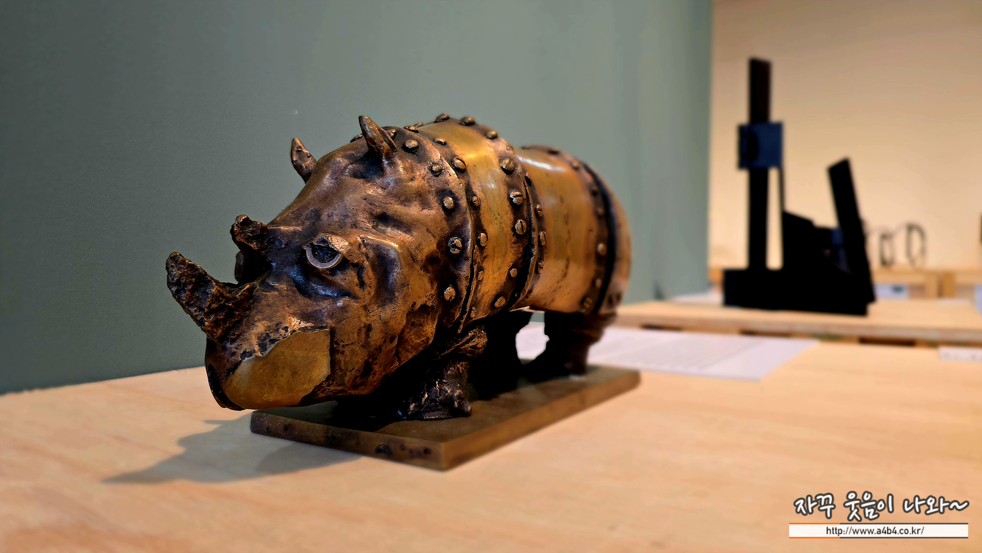 이처럼 작가는 추상적인 모티프를 가지고 오면서노 구체적인 형상과 이미지를 살려 작업하는데, <무제> 역시 철갑을 입은 코뿔소를 사실적으로 형상화한 작품이다. 머리와 몸통을 강조하고 상대적으로 다리와 꼬리는 작게 표현하여 시각적인 재미를 부가했다