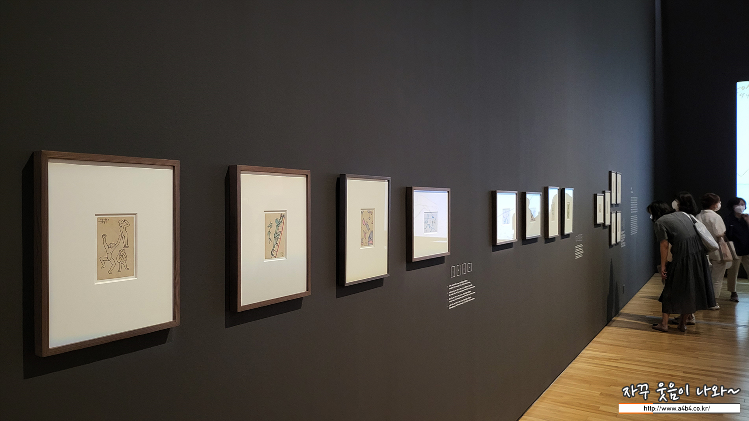 이렇게 이건희 회장이 수집한 40여점의 이중섭 엽서화가 한 장 한장 전시되어 있습니다. 누구에게 메시지와 함께 보낸 그의 그림들... 현재 그의 작품을 이렇게 많은 사람들이 보게 될것을 알고 있었을까요?