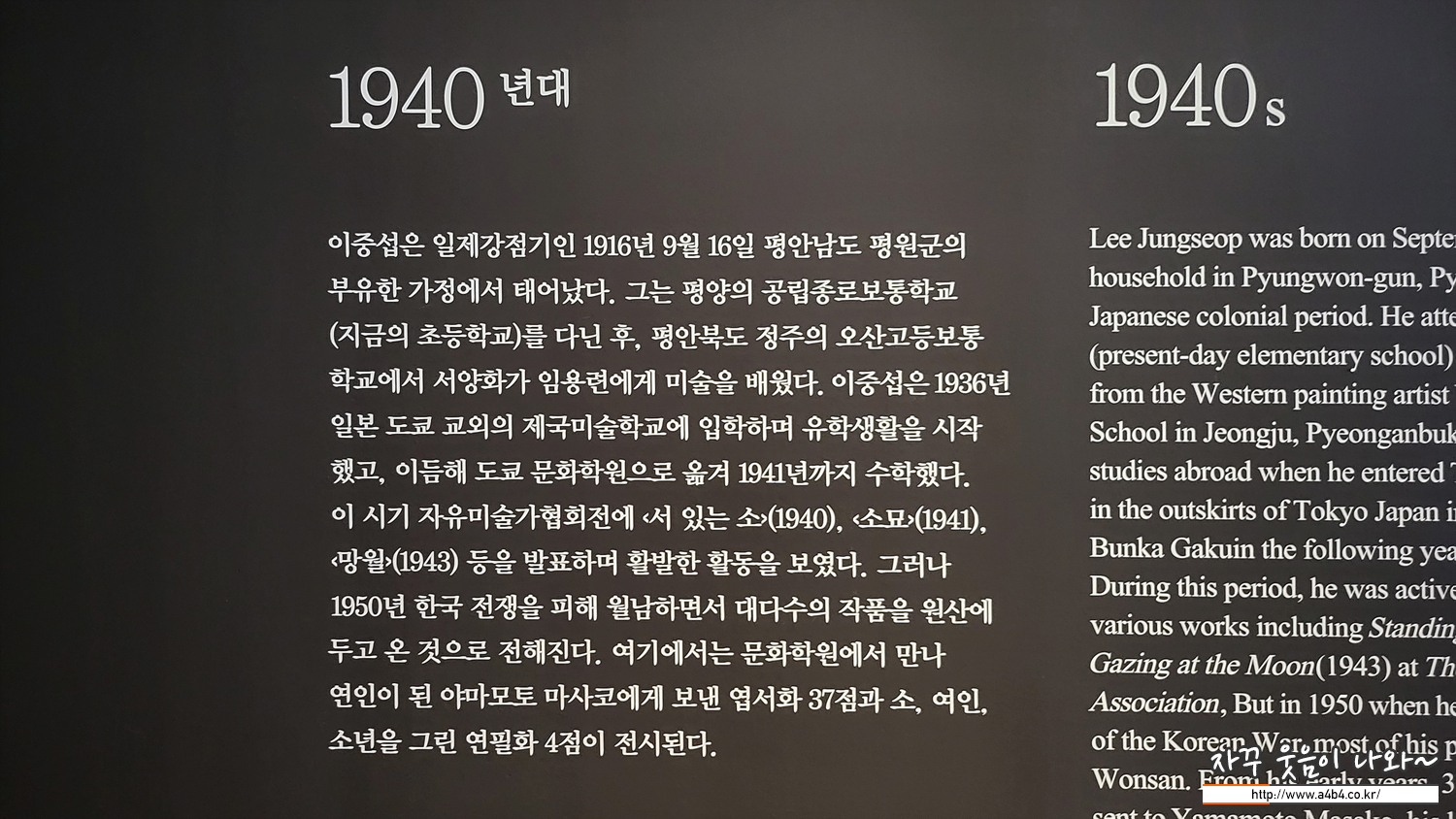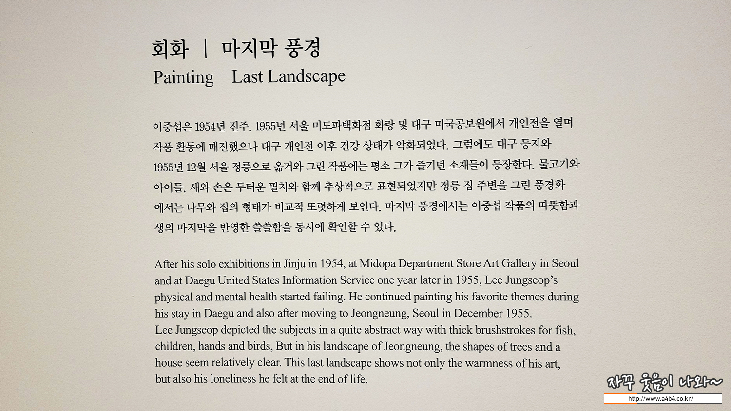 고 이건희 회장이 기중한 작품 중 이중섭 작품 80여점과 국립현대미술관의 기소장품 10점을 모아 90점이 전시되고 있습니다. 그동안 볼 수 없었던 그의 작품을 만나볼 수 있다는 기쁨이...
