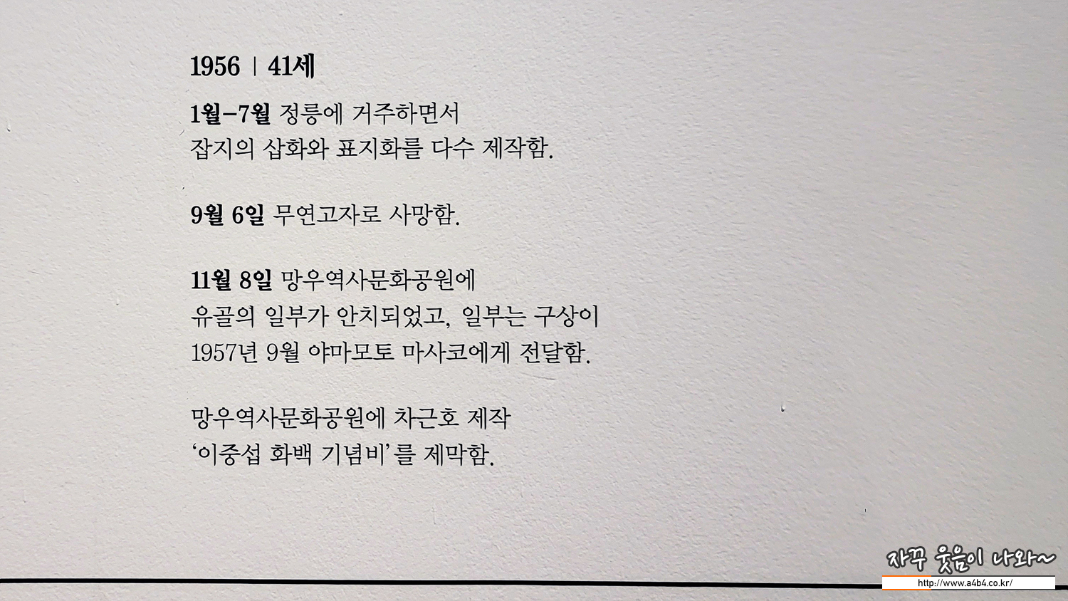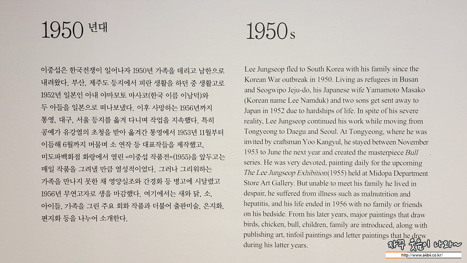 이번 이건희 틀별전 : 이중섭 전시회의 마지막 공간은 그의 연보와 평가로 전시되어 있습니다.
