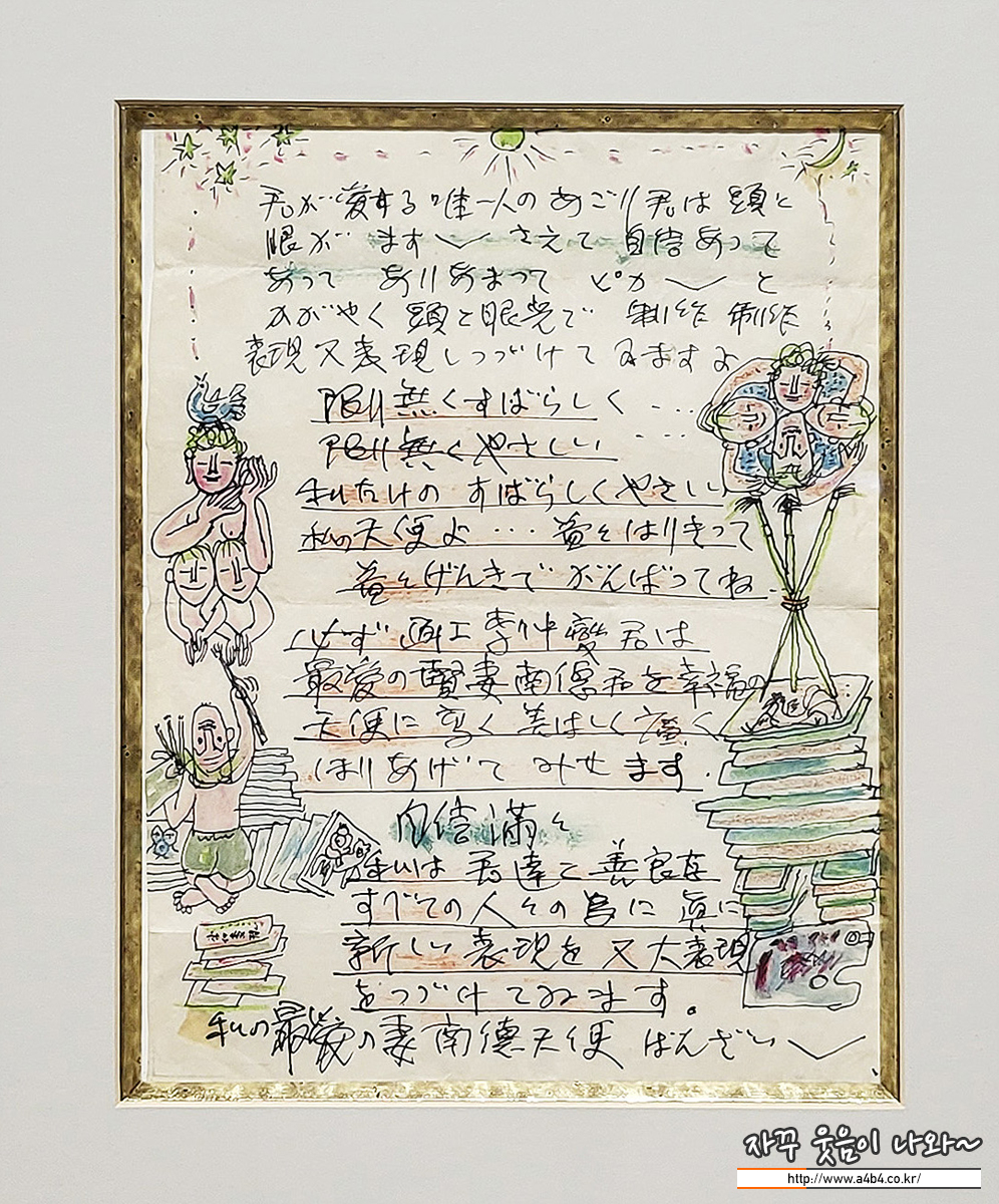 마치 연애편지라도 쓰듯, 몇 번이나 찢어버리면서 다시 쓰고 그림을 꼭 곁들였으며, 봉투를 쓸 때는 굵직한 펜으로 마음에 들 때까지 몇 장이고 글씨를 반복해서 다듬었다고요. 현재 남아 있는 38통의 편지 가운데, 1954년 11월경에 보낸 이 편지는