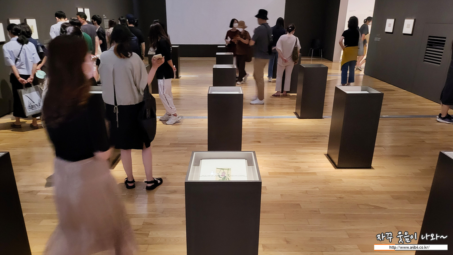 이번 전시회 또한 한 시간 단위로 예약자대상 입장이 진행되는데요. 바로 앞에서 입장하기 보다는 입장시간 조금 지나 입장하시면 좀 더 편한하게 관람이 가능합니다. 아래 사진 왼쪽은 정각에 입장한 공간, 오른쪽은 입장후 30분 후에 다시온 공간입니다. 이 시간부터 관람하시면 쾌적하게 이중섭 전시회 관람이 가능합니다.