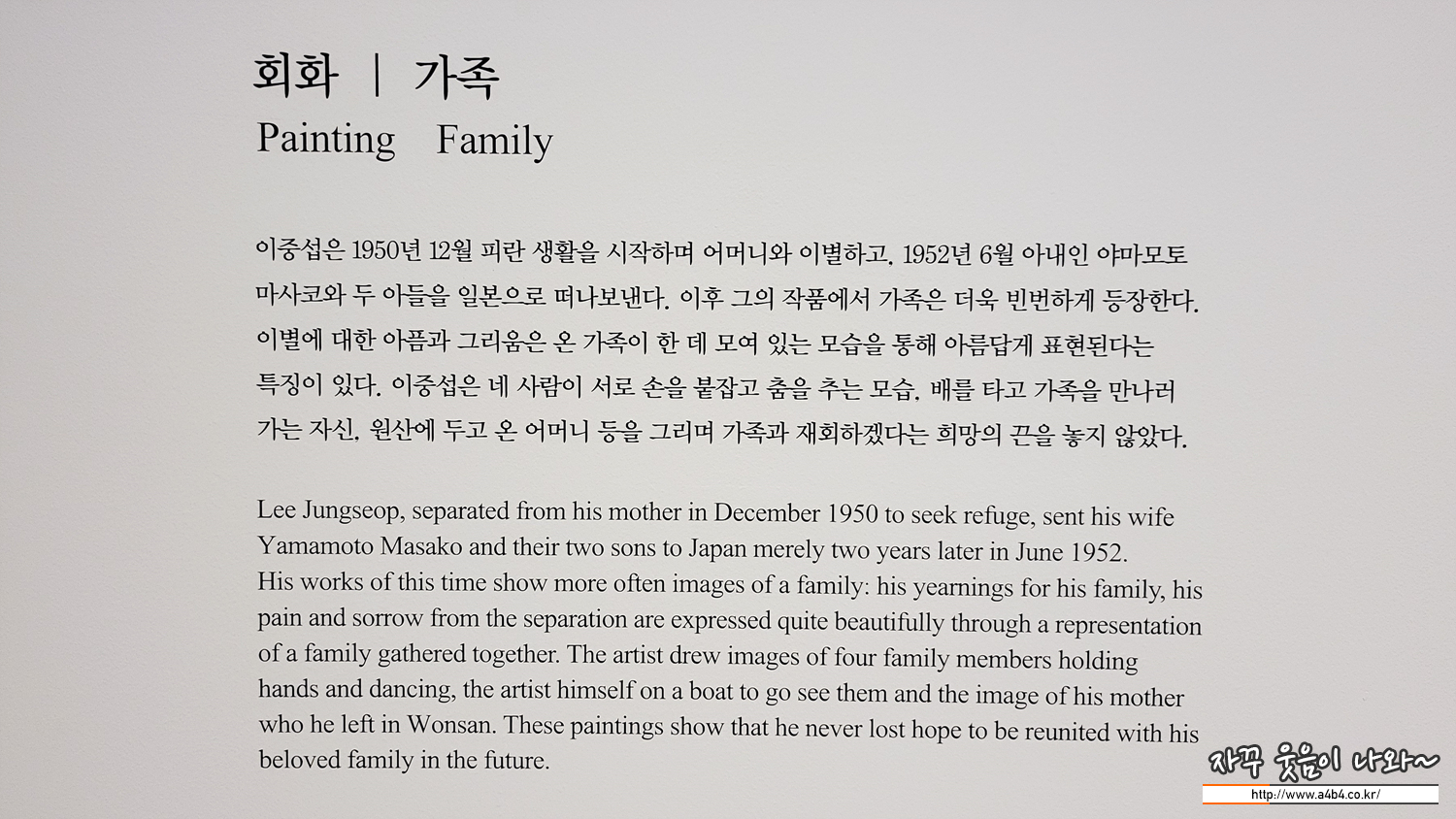 춤추는 가족의 모습을 생동감 있게 그려낸 이 그림은, 절망 속에서도 희망을 그렸던 화가 이중섭의 면모를 확인할 수 있게 해주는 작품이기도 합니다.