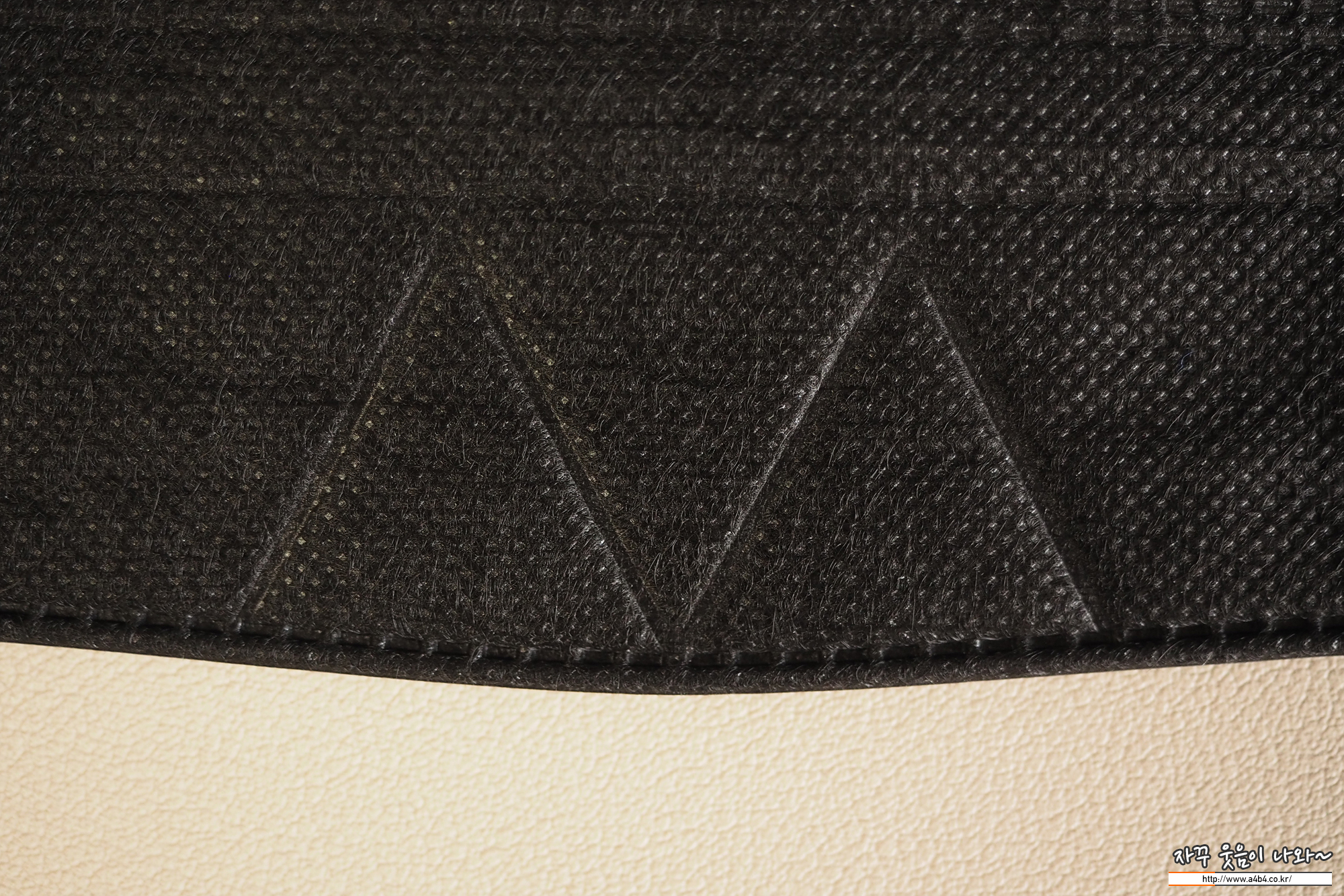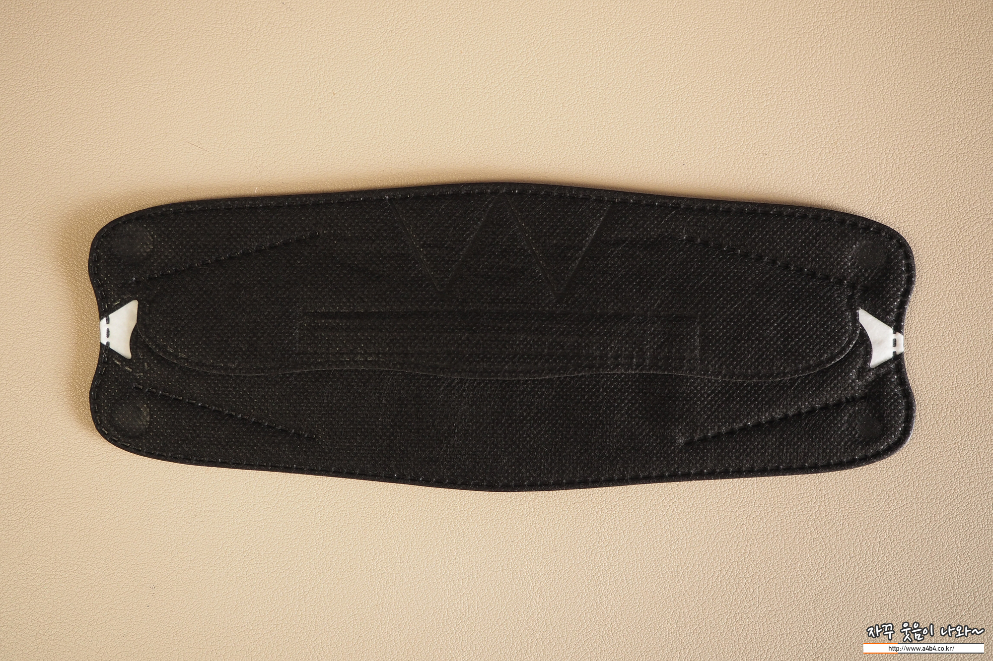 매일편한 마스크 블랙은 가로 삼단접이식 3D 스타일의 디자인을 보이는 제품입니다. 보편적인 스타일과 디자인의 제품으로 마스크 앞부분에는 Defense 문자가 음각되어 있습니다. 조금은 쌩뚱맞고 역시나 블랙마스크 각인은 깔끔하지 못하네요. 좀 지저분하다고 할까요. 이 외에 코편 부분에는 아래와 같이 라인 처리되어 있습니다.