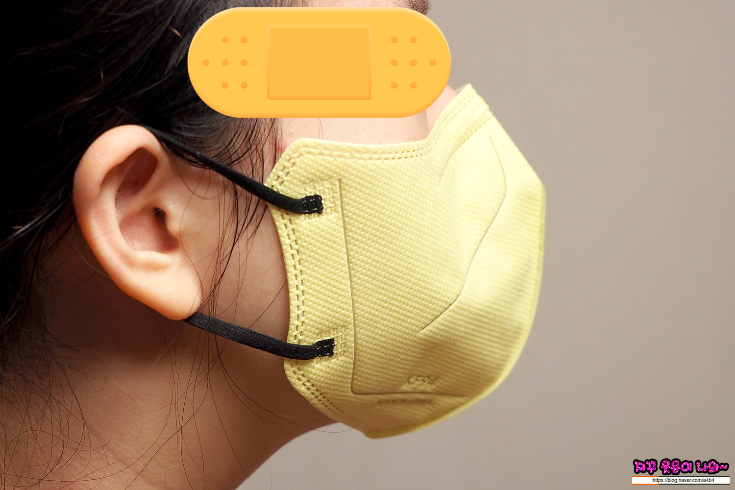 아쉬운 부분은 둥근 이어밴드와 마스크가 얇아서 깊은 숨을 쉬면 부직포가 입술과 접촉하는 문제도 있습니다.