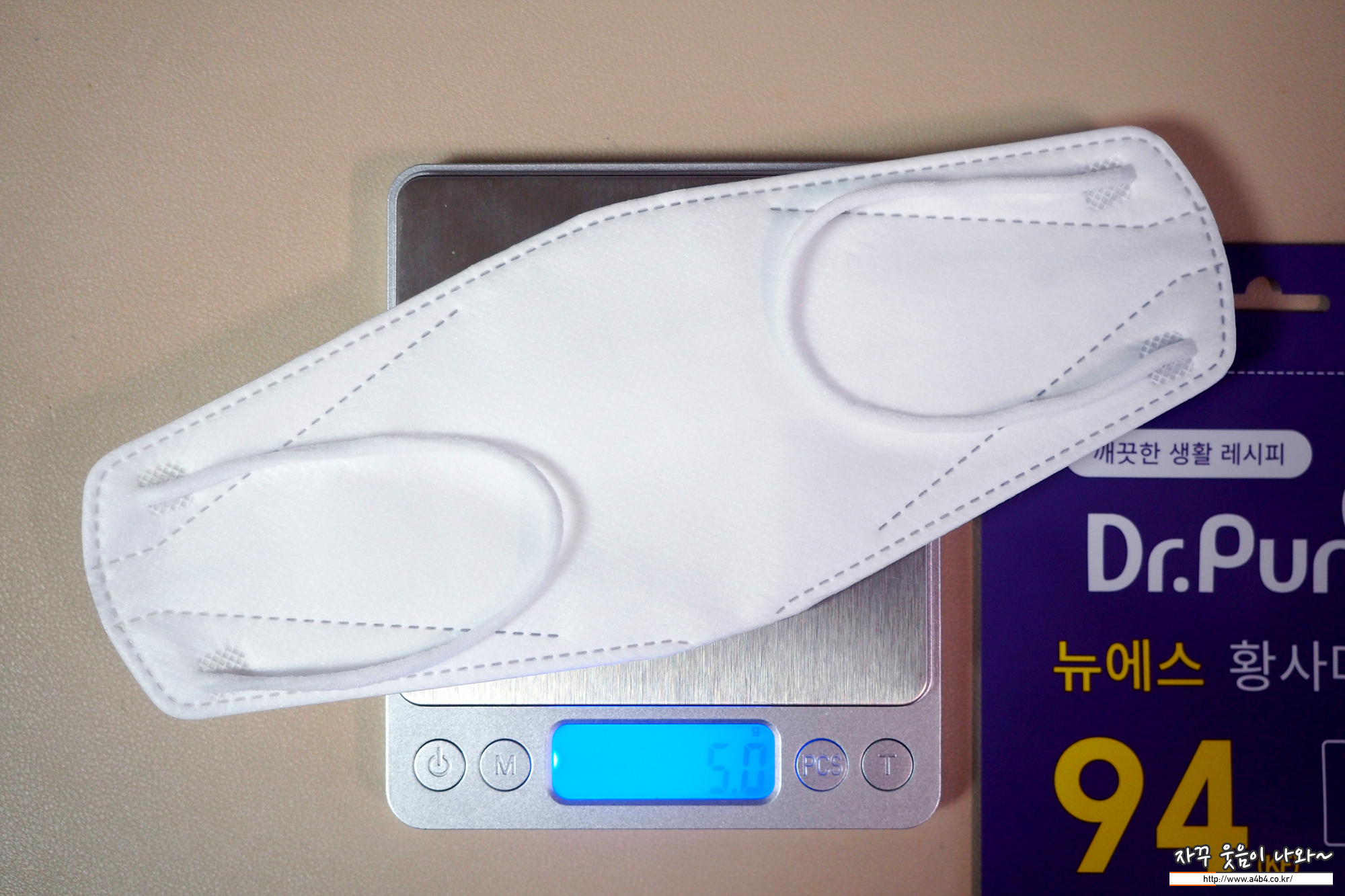 KF94 스윗홈 데일리 마스크 무게는 3.5g으로 새부리 대형 마스크 중에서는 매우 가벼운 타입에 속합니다. 또한 동일한 제품은 퓨어라이프 데일리 마스크와는 -0.5g 차이가 나네요.