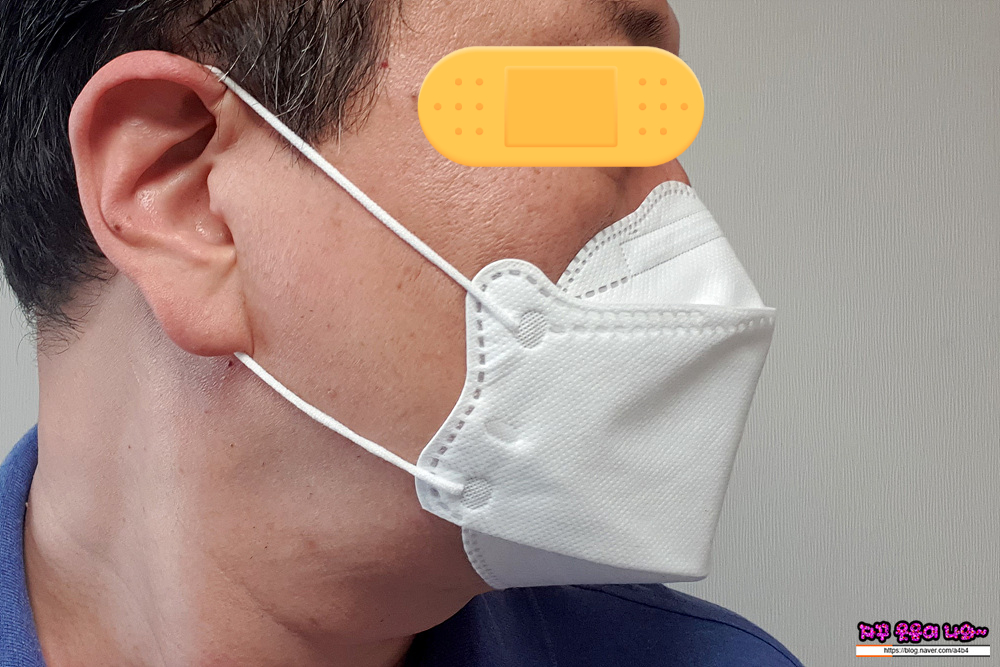 바로 마스크 안감과 입과 접촉이 생기네요. 보통 입체형 마스크의 경우 마스크 내부 공간이 확보되어 이런 불편이 없는데... 이 부분은 저에게는 큰 단점으로 다가 옵니다. (물론 개인의 얼굴형에 따라 차이가 있습니다.)