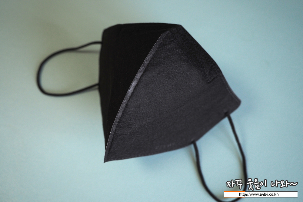 일반적인 가로 삼단접이식 쓰리디스타일의 마스크로 타사제품에서도 볼 수 있는 디자인의 마스크입니다. 조금은 강한 접착부분의 처리가 독특하네요.