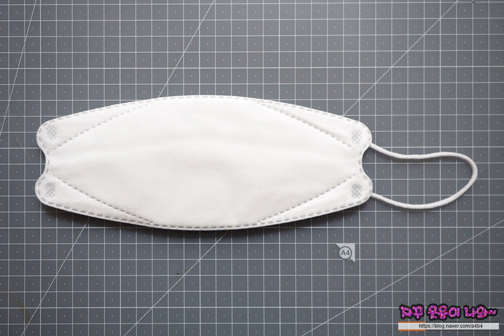 아이엔티 마스크 대형 외피는 약한 엠보싱 처리된 부직포가 사용되었습니다. 외피 촉감은 매끄러운 감촉을 보이며 마스크는 전체적으로 소프트한 타입에 가깝습니다. 두께는 보통수준입니다.