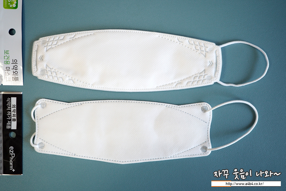 마스크 크기는 가로 약 22센티미터, 높이 약 7센티미터로 타사 마스크에 비해 세로는 조금 길고 높이는 조금 낮은 모양을 보입니다.
