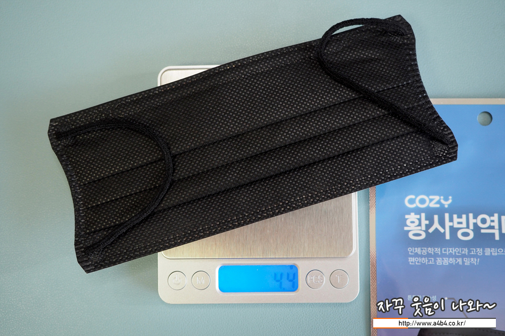 마이케어 KF94 마스크 블랙 대형 무게는 4.8그램으로 타사의 입체형 대형 마스크와 비슷한 무게를 보여주고 있습니다.