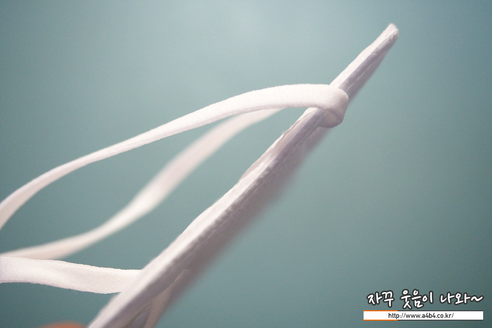 둥근모양의 귀걸이끈은 마스크 앞면에 접착되어 있으며, 제이웨이 마스크 귀걸이끈 탄력은 보통수준입니다.
