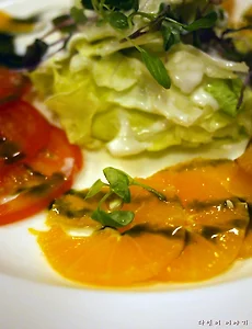 이전글에 '명품 안성한우와 함께하는 황토집 컨셉의 럭셔리 전통 한정식집 '황토궁' - 내부소개 / 구. 삼성역 풀향기' 에 이어서 메인 음식이 나오기 전에 기본 반찬과 음식들이 나옵니다. '샐러드' 맛과 모양에 상당히 신경을 썼습니다. 상큼한 맛이 나는군요. 상당히 만족. 냉채 두부화채 오색 나물과 해초 두부 등이 같이 나옵니다. 나름 깔끔한 맛! 해파리 천사채가 들어간 냉채 간단한 회 한정식, 고기집에서 회를 논하기는... 육회 다른 식당의 육회와는 조금 다른 단백한 맛이 느껴집니다. 양이 좀 적어서 감질맛 난다는... 다음은 이번 코스의 하이라트인 한우 꽃등심, 보쌈김치, 산야초 겉절이, 산나물무침, 명이나물, 백김치