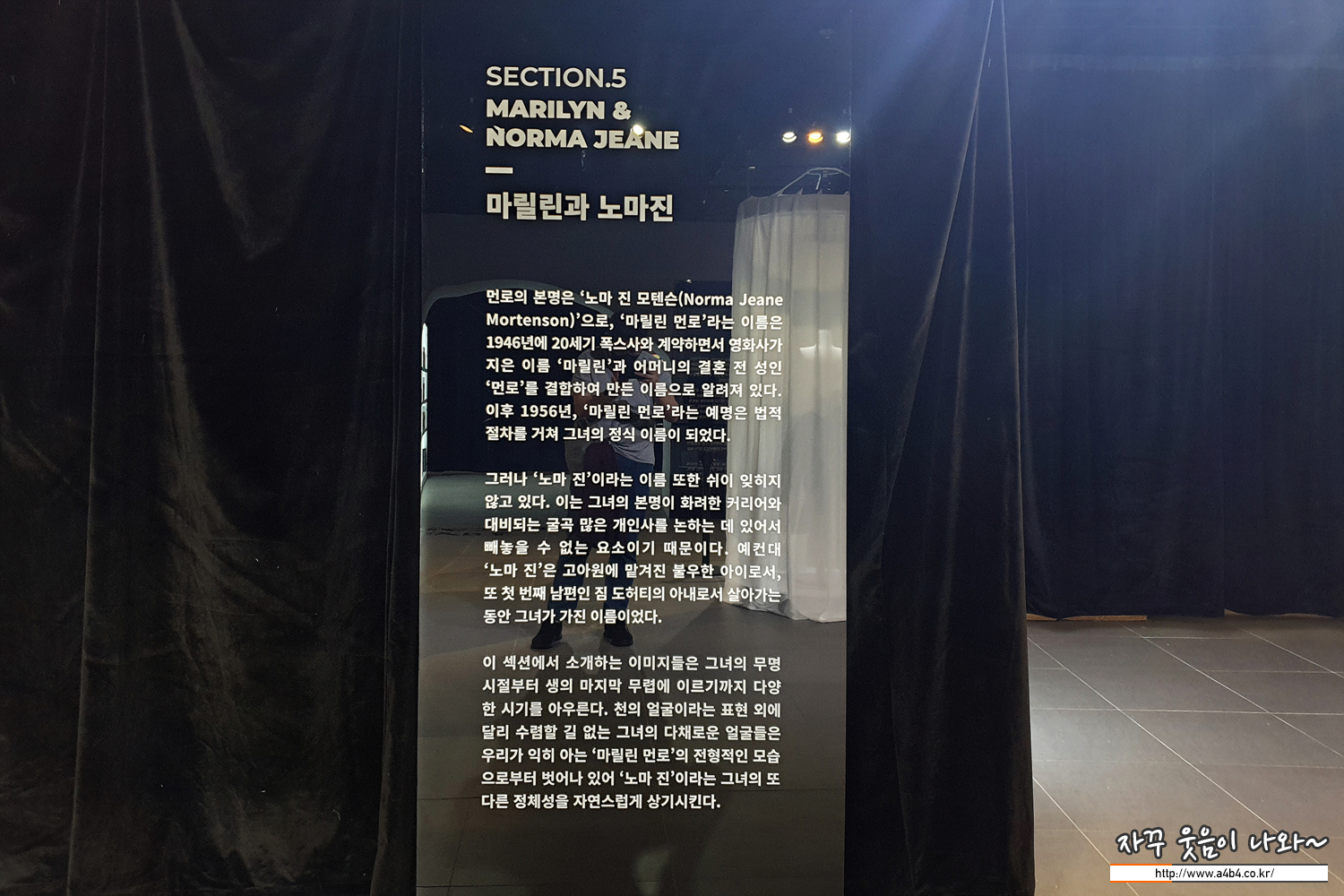 제목과 같이 마릴린 먼로 사망 80주기를 추념하면서 기획된 전시회입니다. 주로 그녀 중심의 사진과 잡지 등이 전시되어 있으며, 이 외에도 영상과 소품들을 만날 수 있습니다. 총 6개의 섹션으로 구성된 전시공간