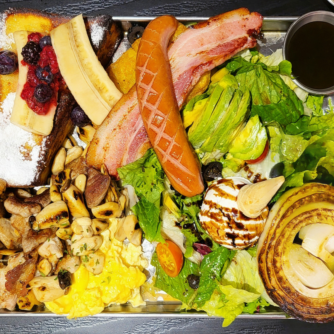 프렌치토스트, 해시브라운, 블루베리, 새송이 버섯 등의 빵류도 같이 나오네요. 상당히 푸짐하고 2~3인이 방문하셨다면 꼭 주문하셔서 나누어 드시는 것을 추천 드립니다