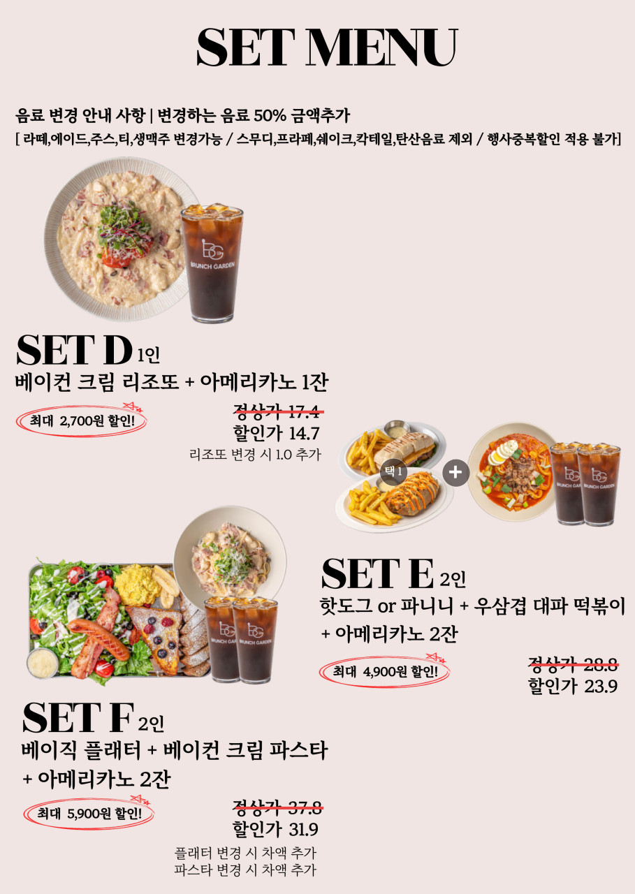 브런치 가든 세트메뉴입니다.