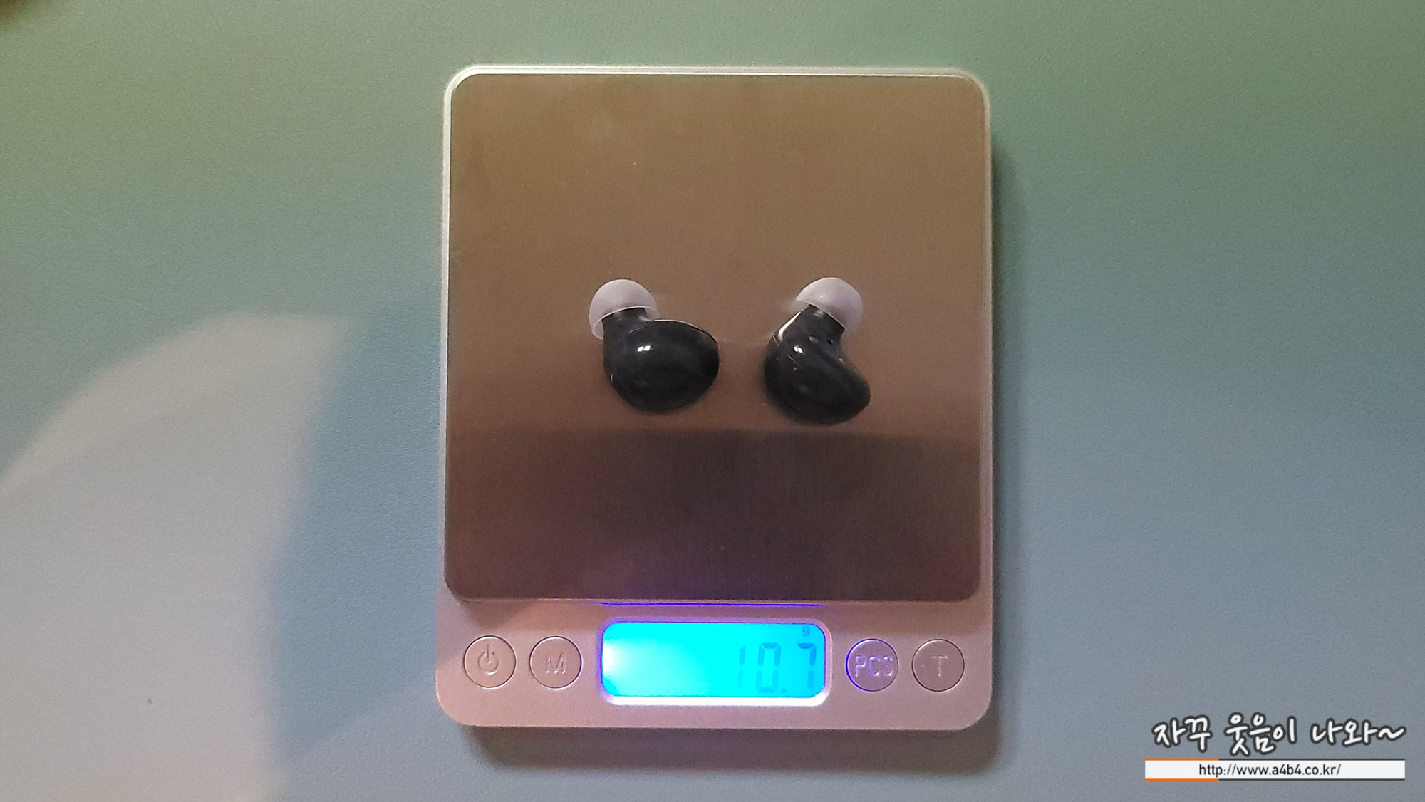 왼쪽 갤럭시버드2 무게는 51.1g, 오른쪽 갤럭시버즈 FE는 51.2g으로 버즈포함 두 제품 무게도 동일합니다.