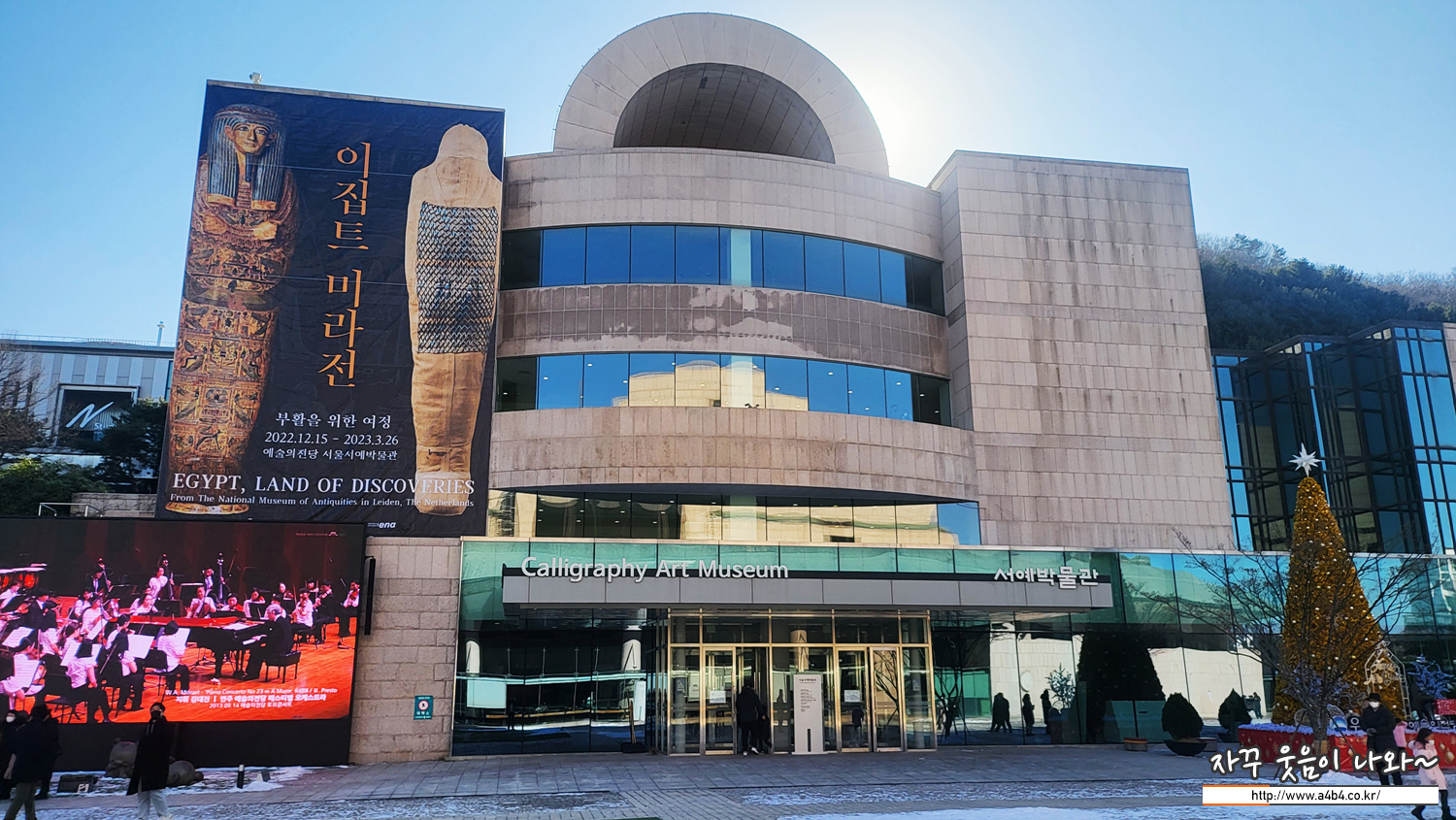 이번 이집트 미라전은 에술의전당 서예박물관 2층에서 열리고 있습니다. 보통 예술의전당 한가람미술관에서 전시를 많이 하는데, 이번에는 주차장에서 다소 거리가 있는 서예박물관에서 열리네요. 하필 올해들어 가장 추운 날씨에 방문했더니 주차장에서 이곳까지 벌벌 떨면서 갔답니다.