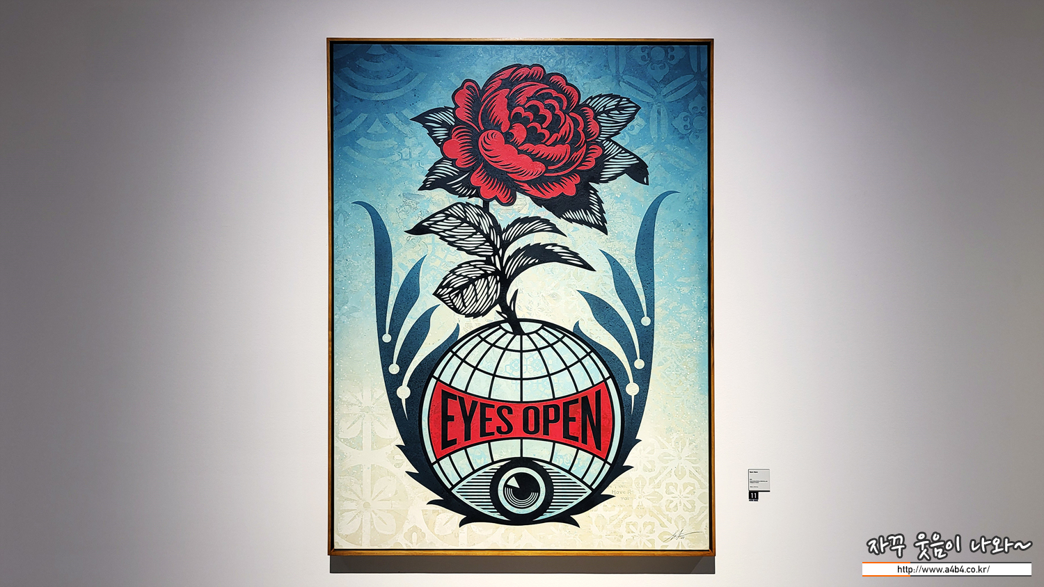 셰퍼드 페어리는 이 작품을 통해 눈을 크게 뜨고 우리가 살아가는 환경과 세상을 주의 깊게 살피기를 유도합니다.