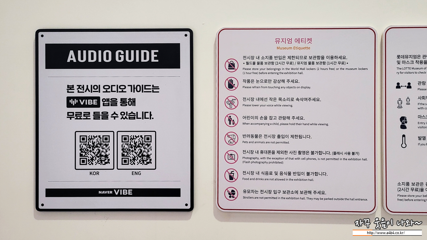 다만, 바이브 (VIBE) 앱을 통해서 무료로 오디오 도슨트가 제공됩니다. 약 20여점의 작품에 대한 오디오 도슨트가 지원되는데요. 이번 전시회를 이해하는데 많은 도움이 되었습니다.